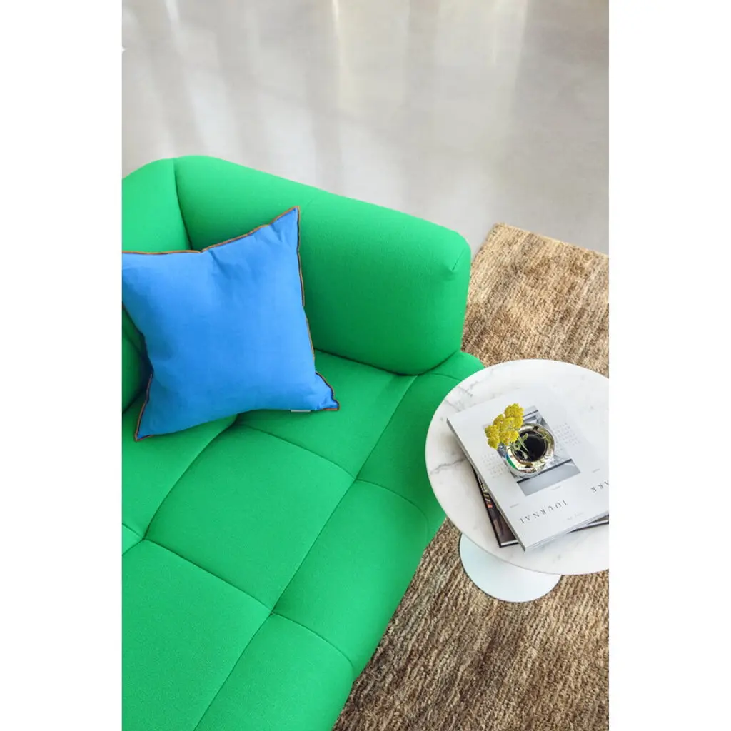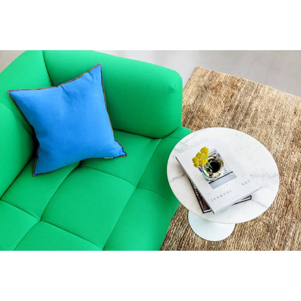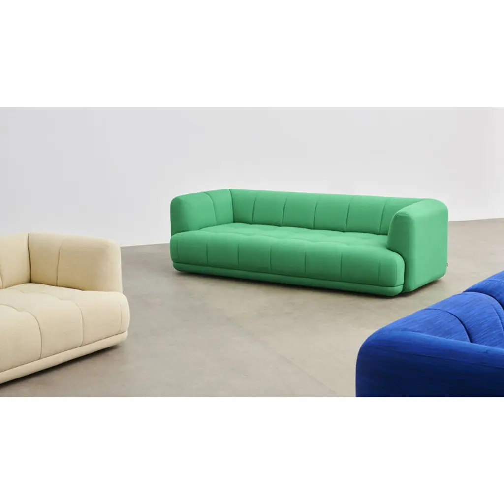 HAY’s Quilton sofa feels inviting down to the last detail: introducing a rounded silhouette and generously padded cushions perfected with stitching, the Quilton sofas are not only beautiful but also extremely comfortable. Created by design studio Doshi Levien, the Quilton collection consists of various combinations of sofas and modules. The uncomplicated design makes them easily adaptable and customizable for different spaces, both private and public alike. HAY’s Quilton sofas feature a voluminous silhouette, high armrests and deep seats, making them perfect for relaxed sitting, lounging and lazing. Because sofas are always large and visually dominant elements, the designers gave Quilton a minimalistic appearance and paid special attention to everything that cannot be seen: a good suspension, soft cushions and durable upholstery. Thanks to Quilton’s sleek look, you can alter the look of the sofa with different cushions and blankets whenever you feel like it.