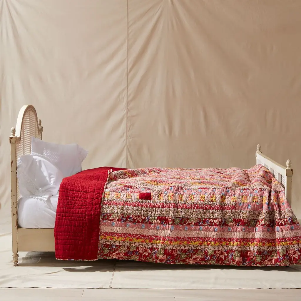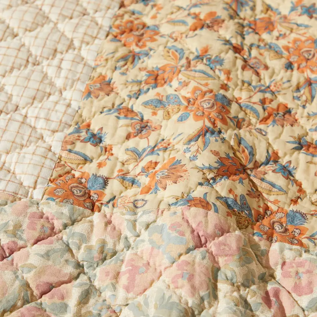 Pieced and patched. Hand-quilted from upcycled cotton remnants, this OEKO TEX® certified quilt’s one-of-a-kind patchwork speaks to the care and attention of its (many) makers.
