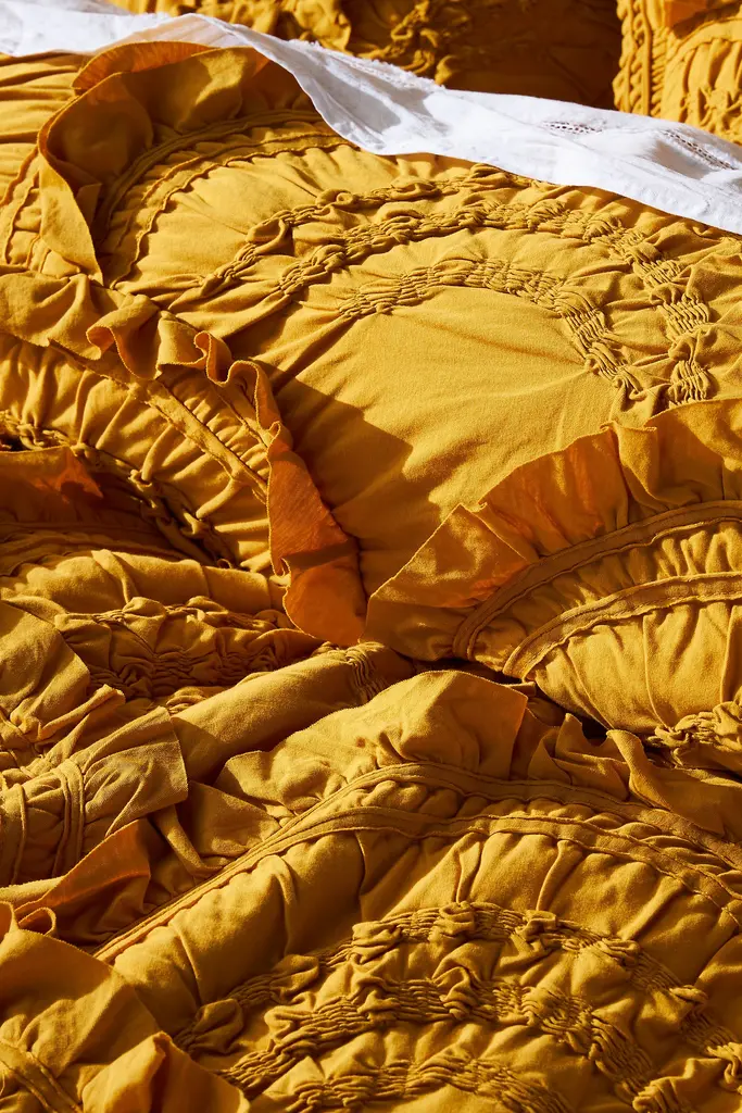 Tucked and tufted ruffles of the softest cotton jersey take three days to complete, resulting in an irresistible texture that instantly adds romance and drama to a room. Looking for the sweetest of dreams? Read our guide to find the perfect bedding for you, and learn how to care for it season after season.