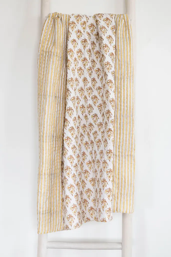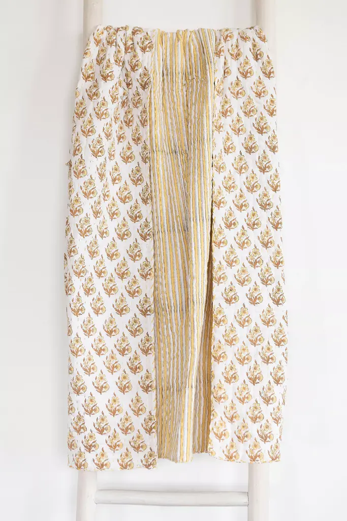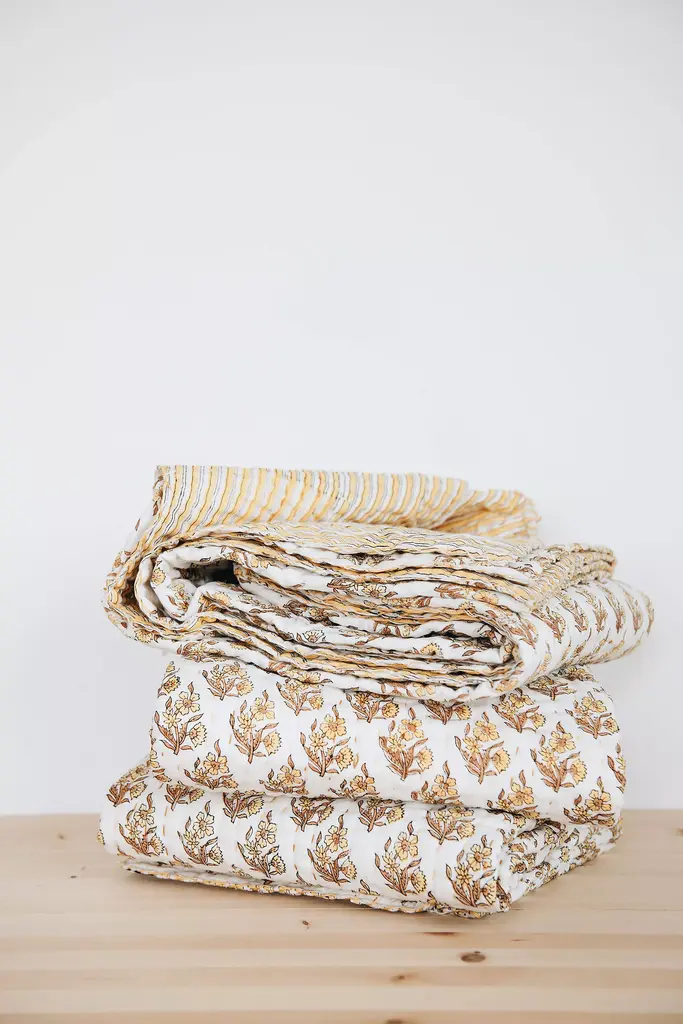 Hand-sewn Kantha Quilt crafted by artisans in India. The hand-blocked cotton material is stitched together with colorful thread to create these beautiful, softly layered cotton throws. Connected Goods works with artisans around the globe to bring their craft and age-old techniques into the modern marketplace. This work brings fair wages and ethical working conditions into rural communities where employment opportunity is minimal. Handmade from layers of hand-blocked cotton Machine wash in cold and gentle, dry on low Imported Dimensions 70” x 50” Please note, handmade products will have slight variations. This is a natural occurrence in handcrafted goods. Looking for the sweetest of dreams? Read our guide to find the perfect bedding for you, and learn how to care for it season after season.