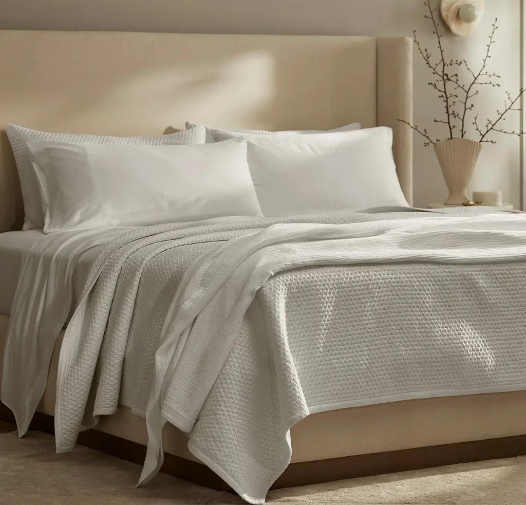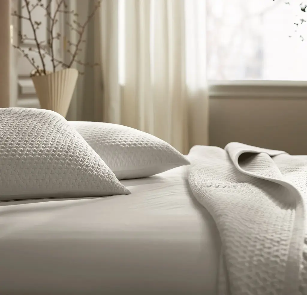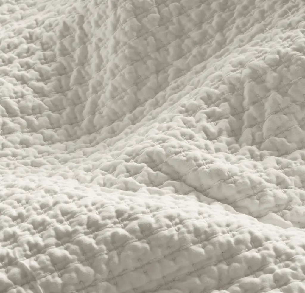 The perfect balance of casual and classic, this heirloom-quality quilt is embroidered with a detailed cross stitch pattern that’s timeless, versatile, and beautifully textured. The meticulous design is crafted with 3 layers of the finest 100% organic cotton: an outer layer of our buttery soft Signature fabric, an airy voile interlining, and cotton batting for a breathable all-season weight. Each quilt is finished with a special wash, giving it even more dimension and the most irresistible softness. Style Tip: Mix & match with your favorite pillows for a modern aesthetic, or pair with the Signature Textured Stitch Quilted Shams for a classic, cohesive look.