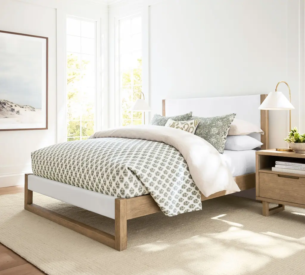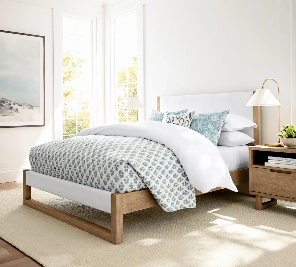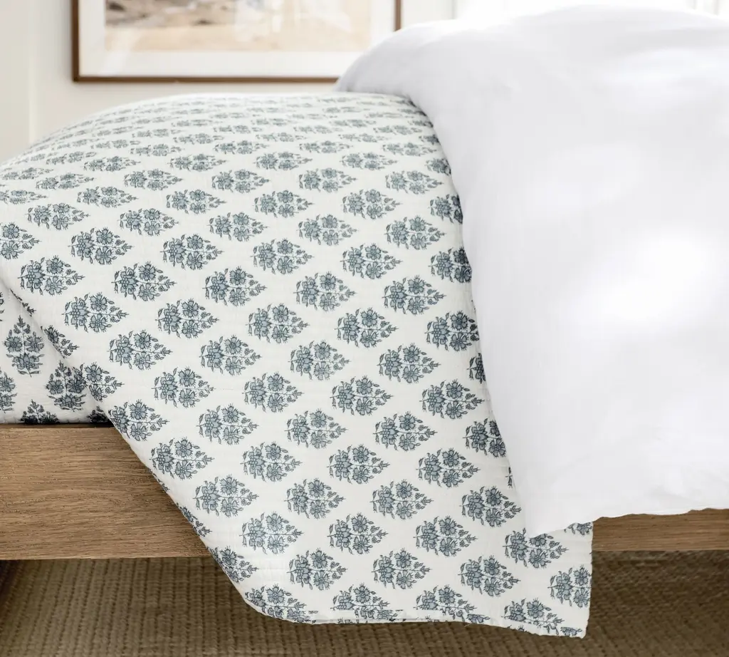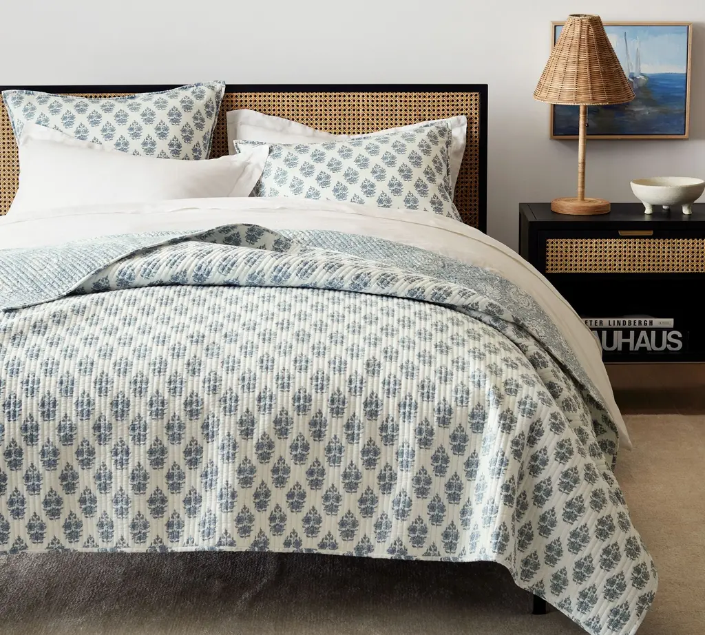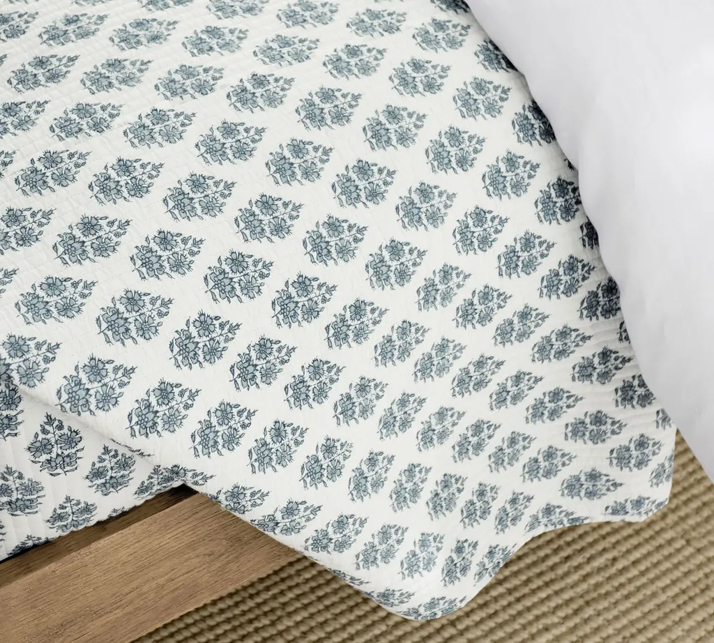 Soft, dusty hues set the tone for these lightweight summer shams. The reversible prints are inspired by Kalamkari on one side and block print on the other. Thin channel stitching lends subtle texture and a classic sensibility. Woven from breathable cotton, they're perfect for warm weather, but also layer nicely in the colder months as well.