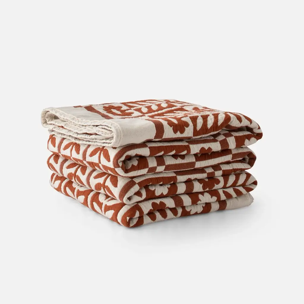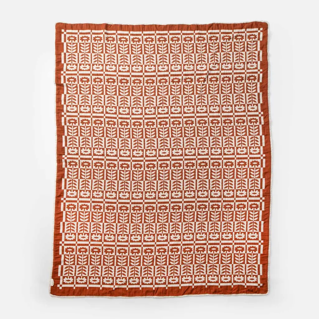 A modern take on a classic American heirloom, the Stillwater Floral Quilt’s bold color-blocking and symmetry pay homage to traditional applique, while its mirrored floral motif makes it easy to style in either direction. The perfect layering piece throughout the seasons, this jacquard woven textile’s cozy weight and lived-in texture are sure to be forever cherished. Made in Portugal from 100% cotton. A Schoolhouse Original. Bundle and save when you add two Stillwater shams plus a coordinating quilt to your cart.