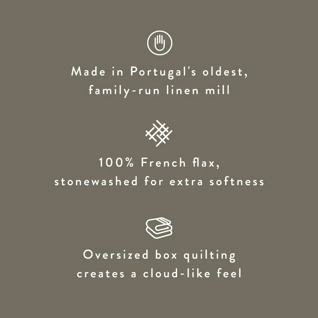 A one-and-done bed maker that’s effortless to style, supremely soft, and a total showpiece. Say hello to our stonewashed linen quilts – a must-have addition for your bedroom that’s lightweight, cozy, and perfect year-round. Designed to mix and match with our entire stonewashed linen bedding collection, each quilt features large 7.5” squares for added fluff and is garment washed to create a super soft feel.Made using only the finest French flax and woven in the oldest, family-run linen mill in Portugal, each piece is Oeko-Tex®-certified and made sustainably in a fair trade working environment.Want to see our bedding for yourself? Go on and test out our linen fabric swatches.