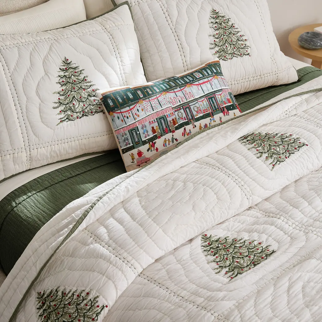 Features a charming evergreen motif in a classic holiday hue. Crafted from soft, breathable cotton for year-round comfort. Lightweight and perfect for layering. A cheerful accent that brightens any bedroom.