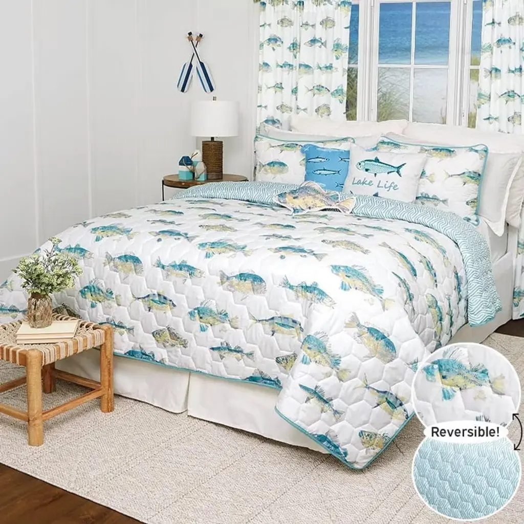The Lakeside Collection Tisa Fish Quilt Ensemble - Full/queen Quilt