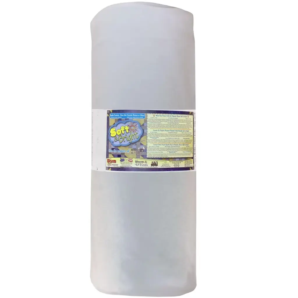 Warm & White is The Warm Company’s second highest selling quilt batting. It has become the trusted choice for quilters and crafters who work with white, pastel, and tone-on-tone fabrics. Made with purified, bright white U.S.-grown cotton, this low-loft, needle-punched batting offers exceptional softness, stability, and strength—without the natural flecks found in natural cotton batting that could show through lighter fabrics. This batting is everything you love about Warm & Natural, made from the same high-quality cotton and manufacturing process—just purified to a pristine white. Warm & White undergoes a special cleaning and whitening process that also pre-shrinks the cotton fibers, reducing shrinkage and eliminating the need for pre-washing. When looking for a finished quilt that will remain pristine without puckering around your quilted lines, Warm & White is the perfect choice! The cotton is needle-punched through a thin, durable polypropylene scrim without the use of glue or resins, creating a secure, consistent batting that won’t separate, bunch, or shift. You can quilt or tie up to 10" apart, allowing you to finish projects more quickly and confidently—whether you're a beginner or seasoned quilter. Warm & White is perfect for quilts, wall hangings, seasonal crafts like snowmen or stockings, quilted clothing, and any project where a bright, clean background is essential. Pre-Wash & Care Instructions: Pre-washing is optional. Warm & White is pre-shrunk so you will experience little to no shrinkage with your first wash. To pre-wash (if desired): hand soak in mild detergent for 20 minutes, rinse thoroughly, gently squeeze (do not wring), and lay flat to dry or tumble dry on low. Proudly Made in the USA