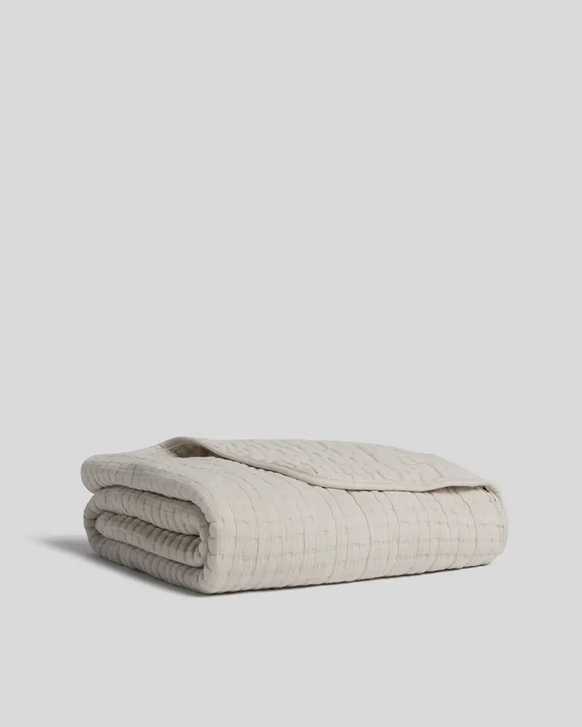 Capture linen's timeless appeal with this casually elegant take on the classic quilt. Marled linen and a thin layer of batting add up to the perfect extra layer for transitional spring nights. Traditional diamond quilting stitch keeps it all together. Laundered linen quilt is washed and tumbled to soft perfection for a relaxed, lived-in look.