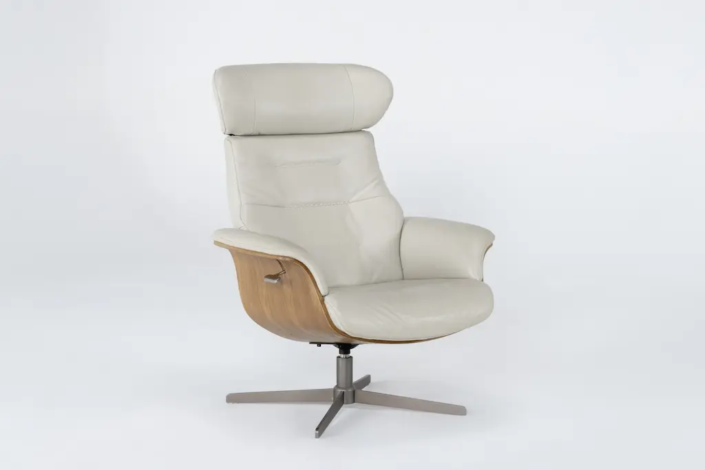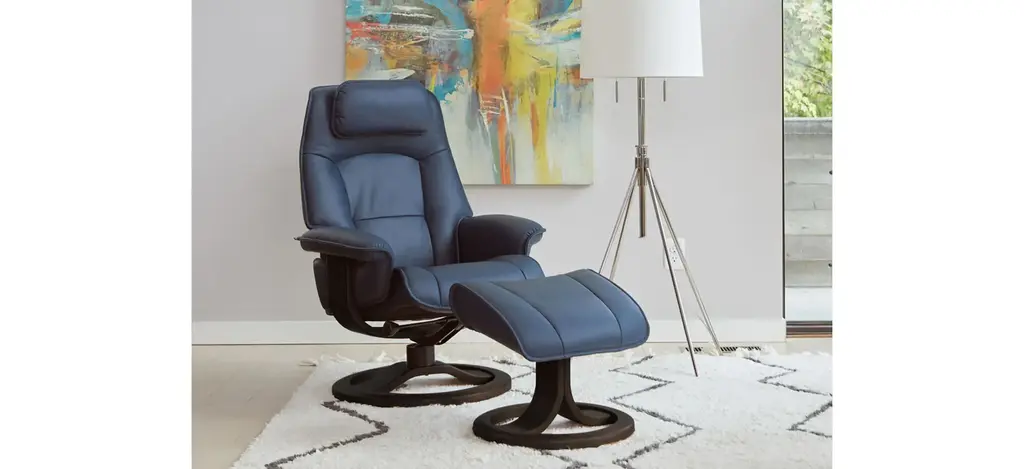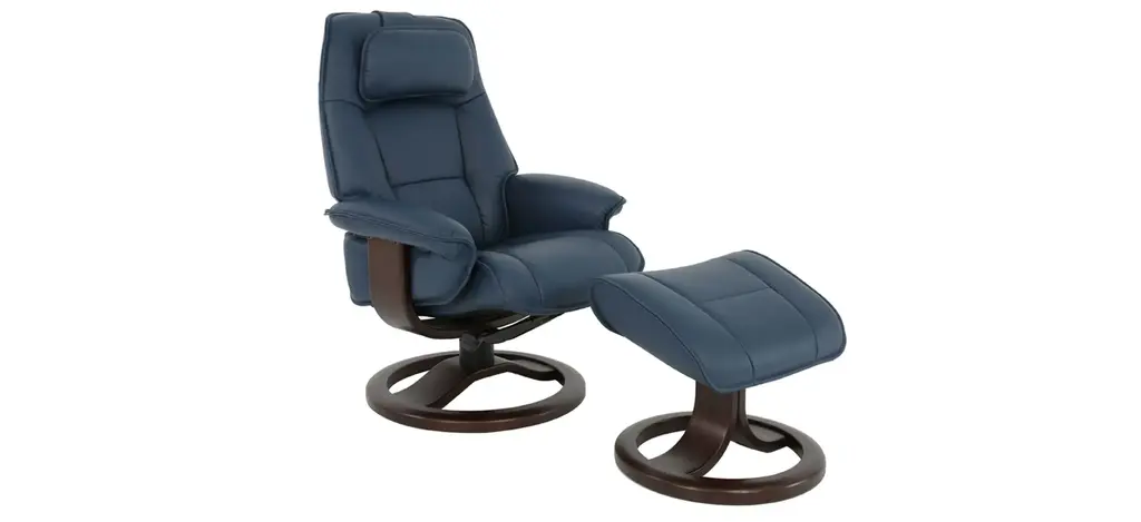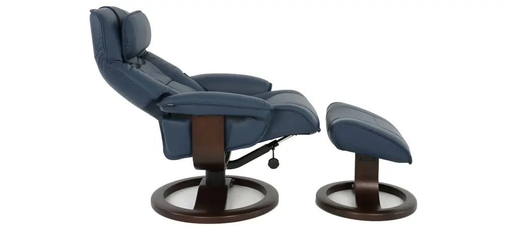 The Admiral R large recliner and ottoman provides continuous support for your legs and back. The base has 360o swivel and is made with laminated, stained rubberwood for an elegant appearance. The Admiral features an adjustable head pillow for maximum comfort and a manual release adjustable headrest angle.