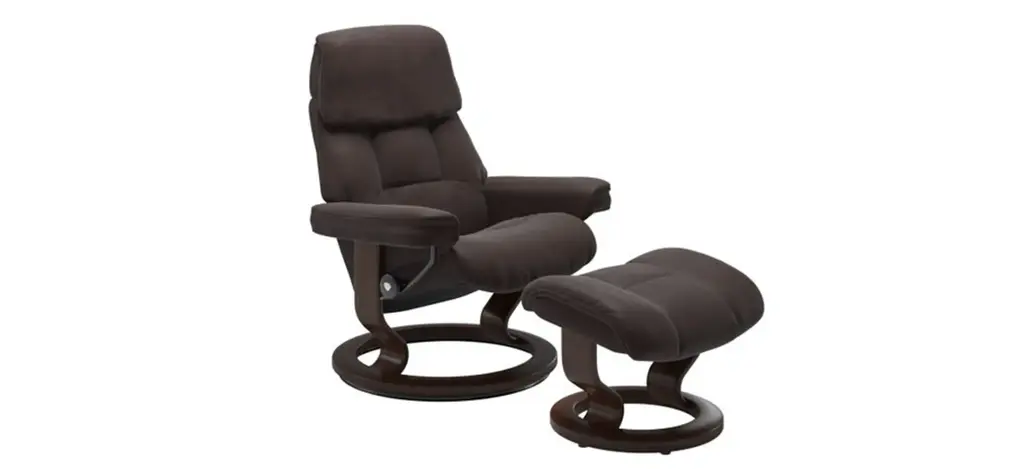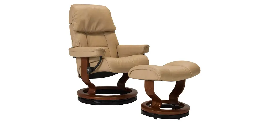 Stressless Ruby Medium Classic Leather Reclining Chair And Ottoman