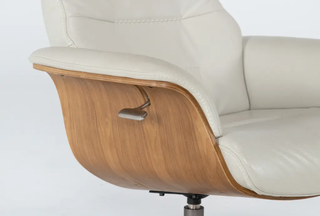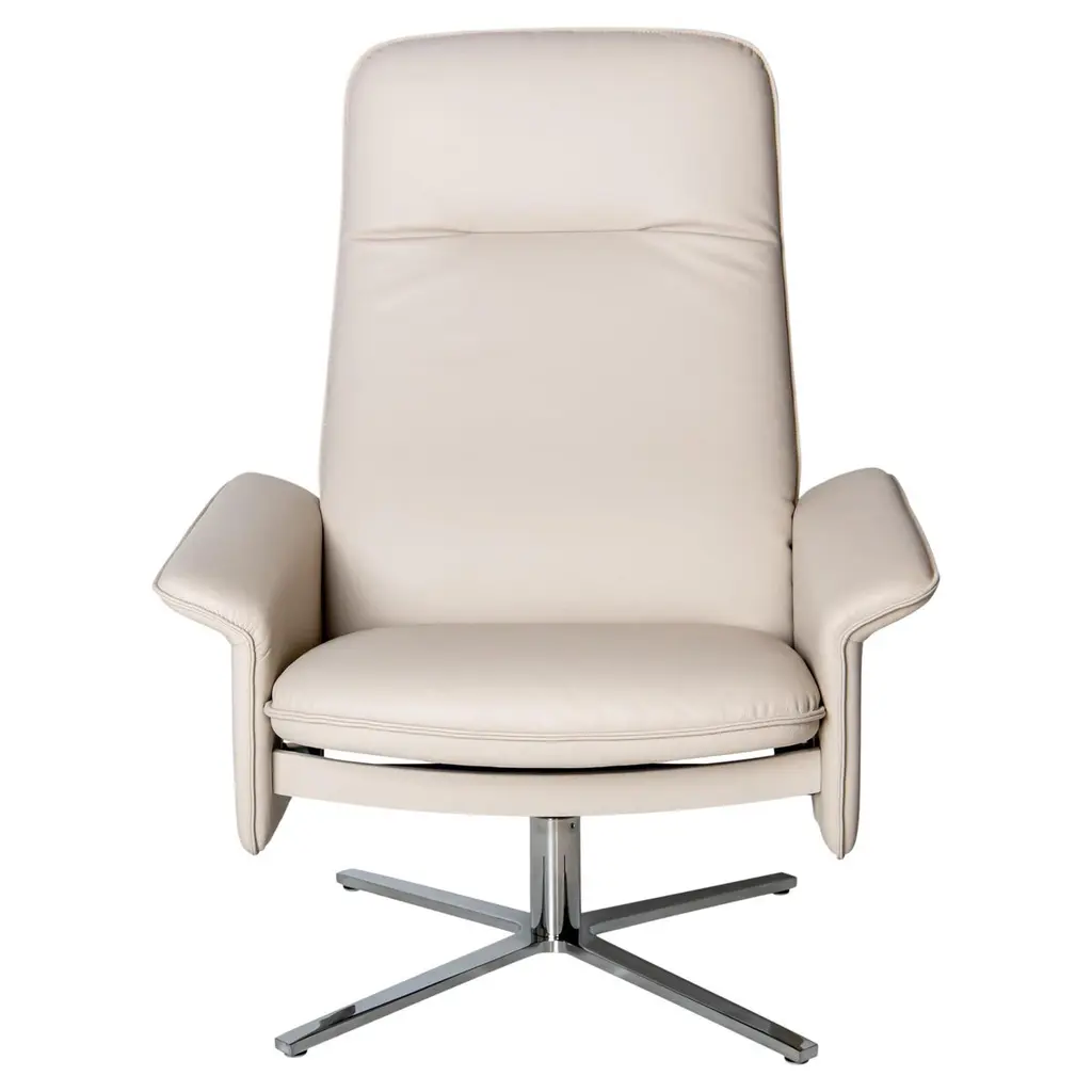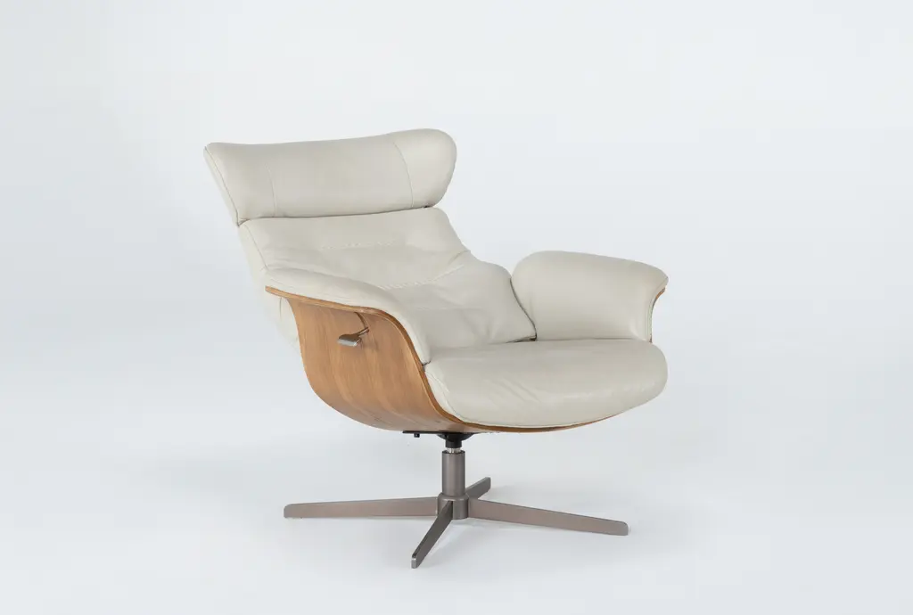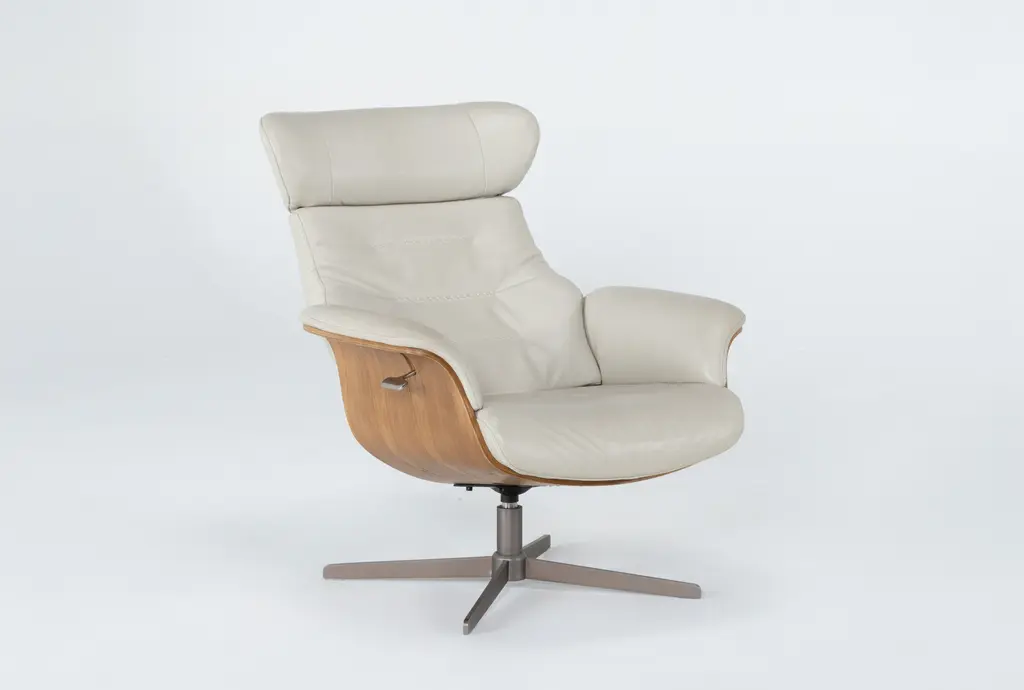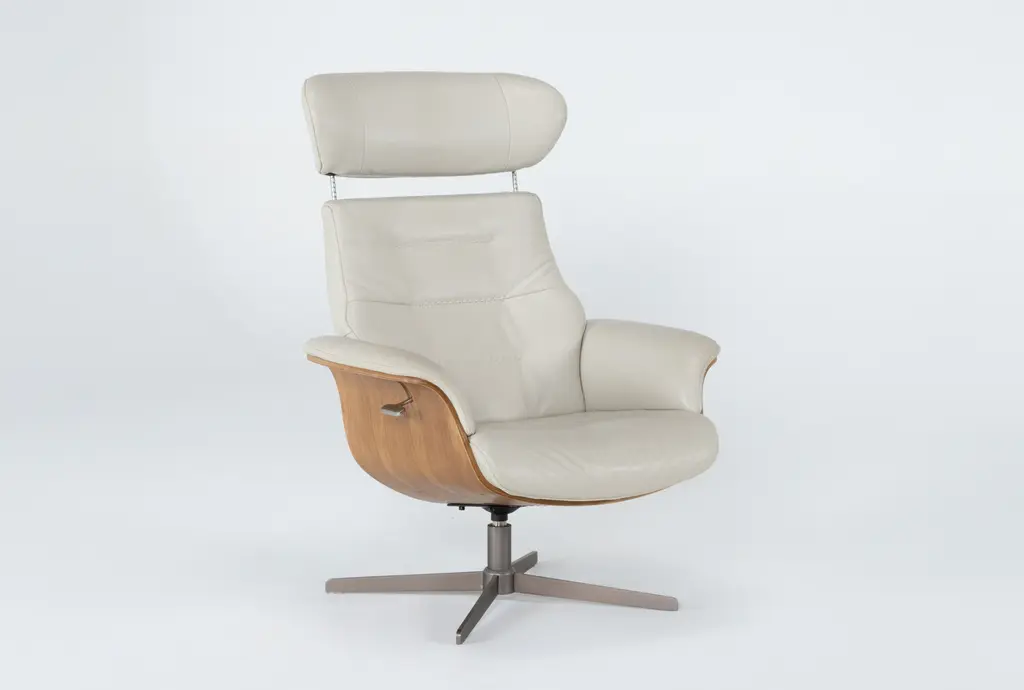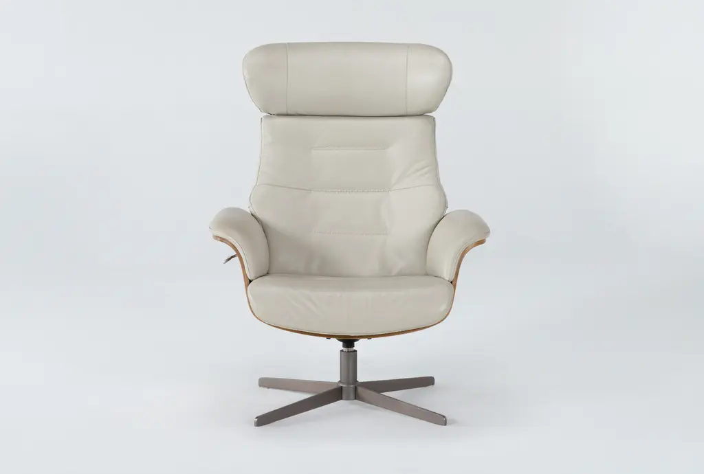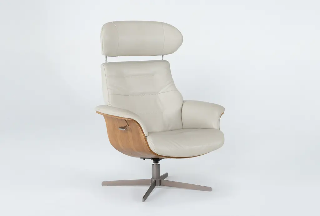 Amala Beige Bone Leather Reclining Swivel Arm Chair With Adjustable Headrest | Solid | Adjustable Headrests | 100% Leather