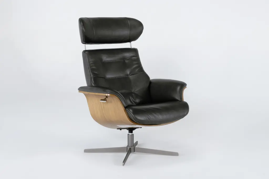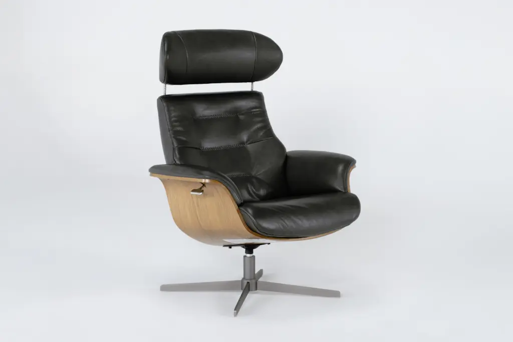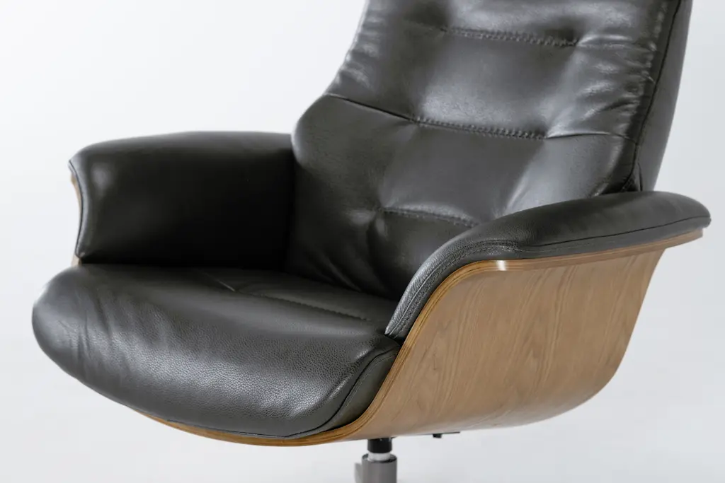 Amala Dark Grey Leather Reclining Swivel Arm Chair With Adjustable Headrest | Solid | Adjustable Headrests | Reading