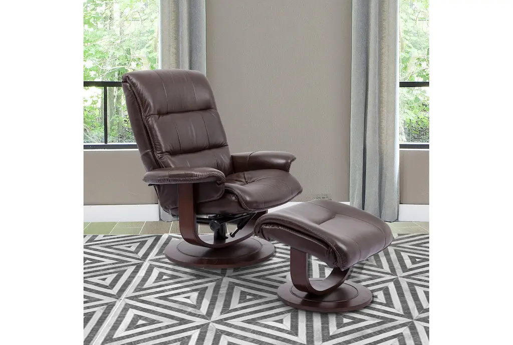 Dalbert Brown Leather Manual Reclining Swivel Arm Chair and Ottoman
