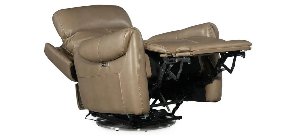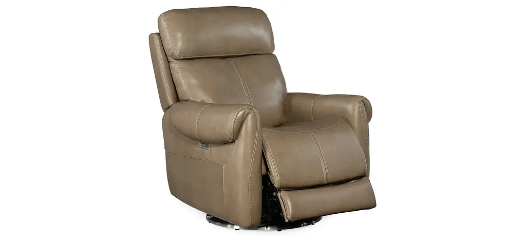 Sterling swivel power recliner with power headrest is a designer-inspired collection of upscale leather seating. Designed and curated to appeal to a variety of style tastes, each piece from Hooker Furniture Upholstery is meticulously crafted in a unique selection of textures and hues.