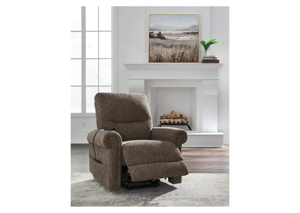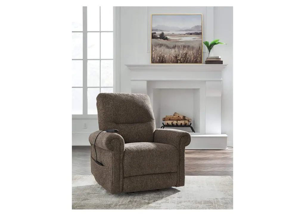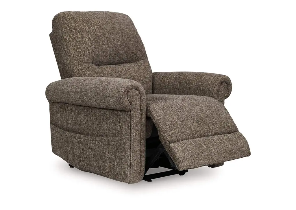Take total relaxation for a spin. Made with affordable comfort and style in mind, the Aureta power lift recliner is loaded with features that take lounging to the next level. Unwind and keep things toasty with the heated seat and massage features. Time to move? The lift function gets you back on your feet with easy one-touch controls. And upkeep is a breeze thanks to the recliner's stain-resistant Next-Gen Nuvella™ fabric. Weight 133.000 lbs. (59.85kgs.)