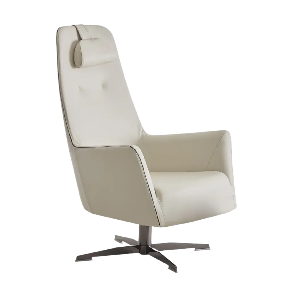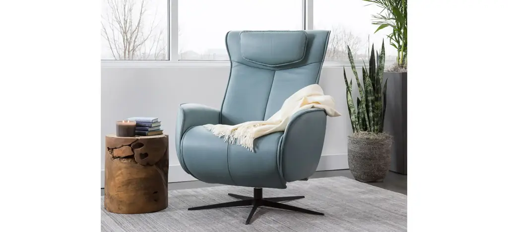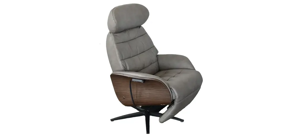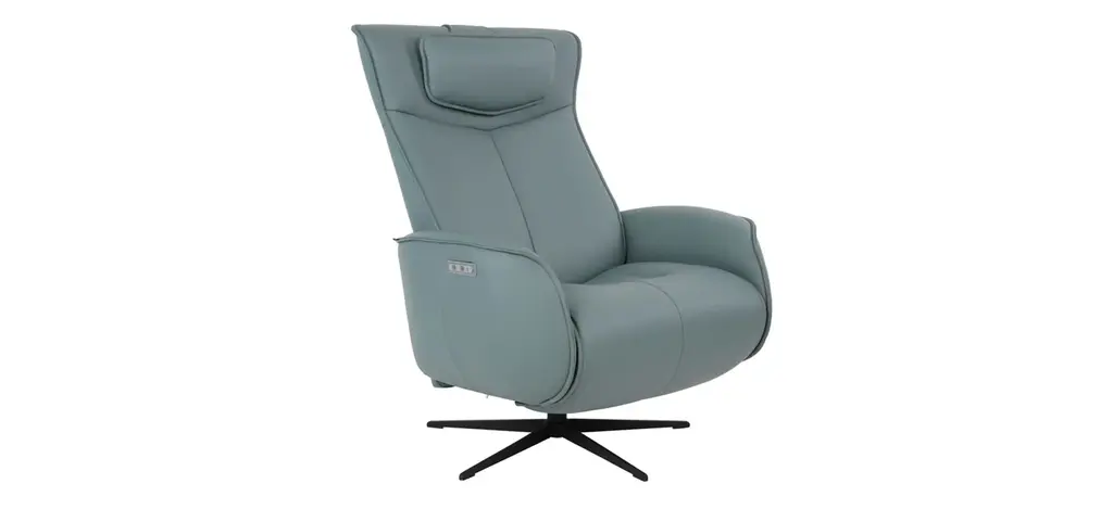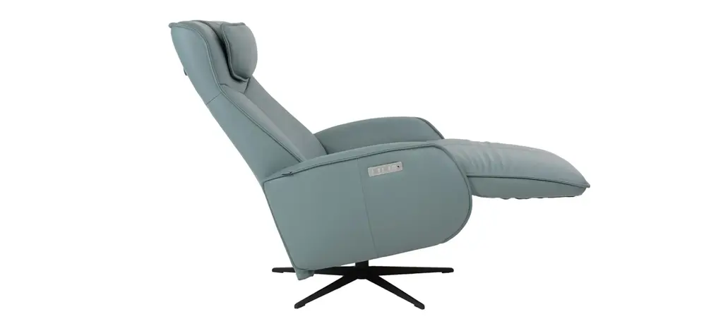 The Axel Medium Recliner features a contemporary design with unrivalled seating comfort. The dual motorized design provides continuous support for your legs and back, with independent control of the footrest and back position, with bases which swivel. Available in all our leathers, Axel features a moveable head pillow for added comfort, and a manual release adjustable headrest angle.