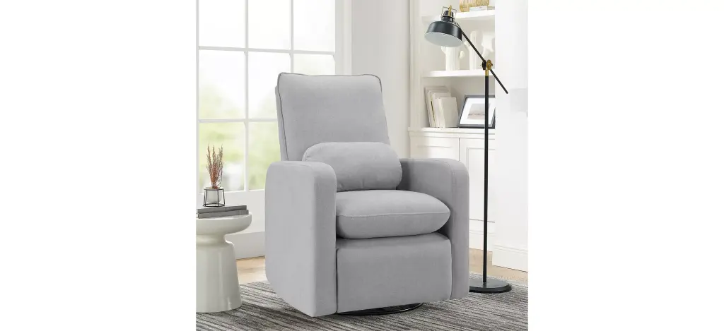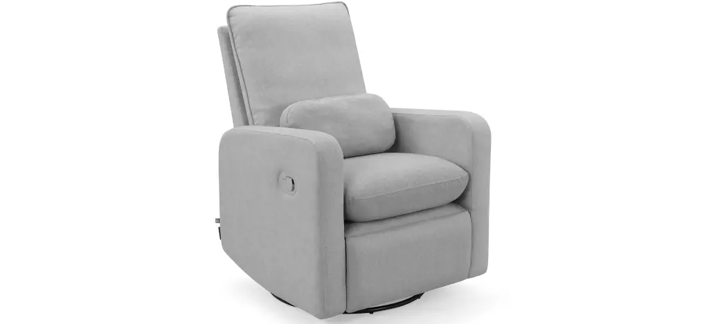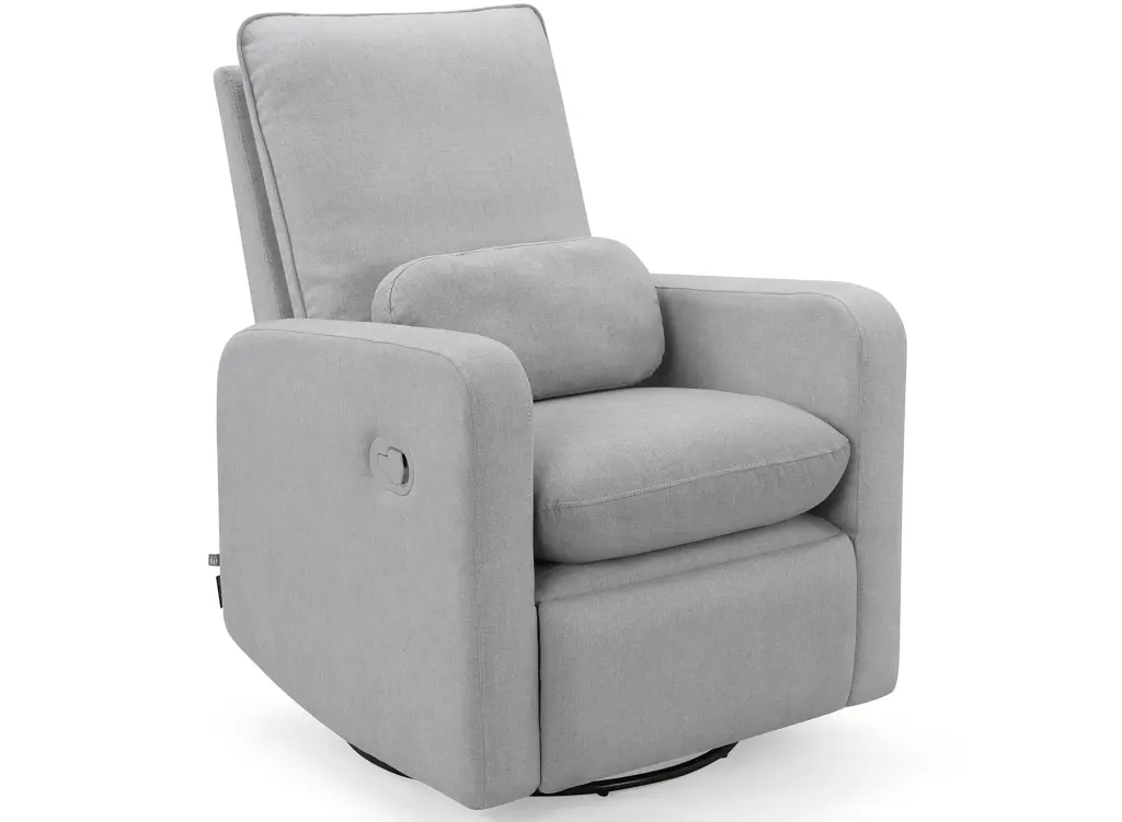 The BabyGap Cloud Recliner with LiveSmart Evolve Fabric brings a modern silhouette, clean lines and plenty of cozy comfort to the nursery. The recliner features an easy-to-reach pull tab reclining mechanism that offers two recline positions (footrest up only and footrest up with back reclined), plus it swivels and glides with a smooth motion, so you won't disrupt your little one's sleep while you get comfortable. The included lumbar pillow provides additional support. The perfect combination of performance and suitability, the babyGap Cloud Recliner is upholstered in LiveSmart Evolve fabric that is durable, stain-resistant, and sustainably designed using fabric made from recycled plastic bottles. LiveSmart Evolve will keep the recliner looking and feeling beautiful while helping to divert as many as 30 plastic bottles from waterways and landfills per chair. Create a more sustainable future for your whole family with the babyGap Cloud Recliner.