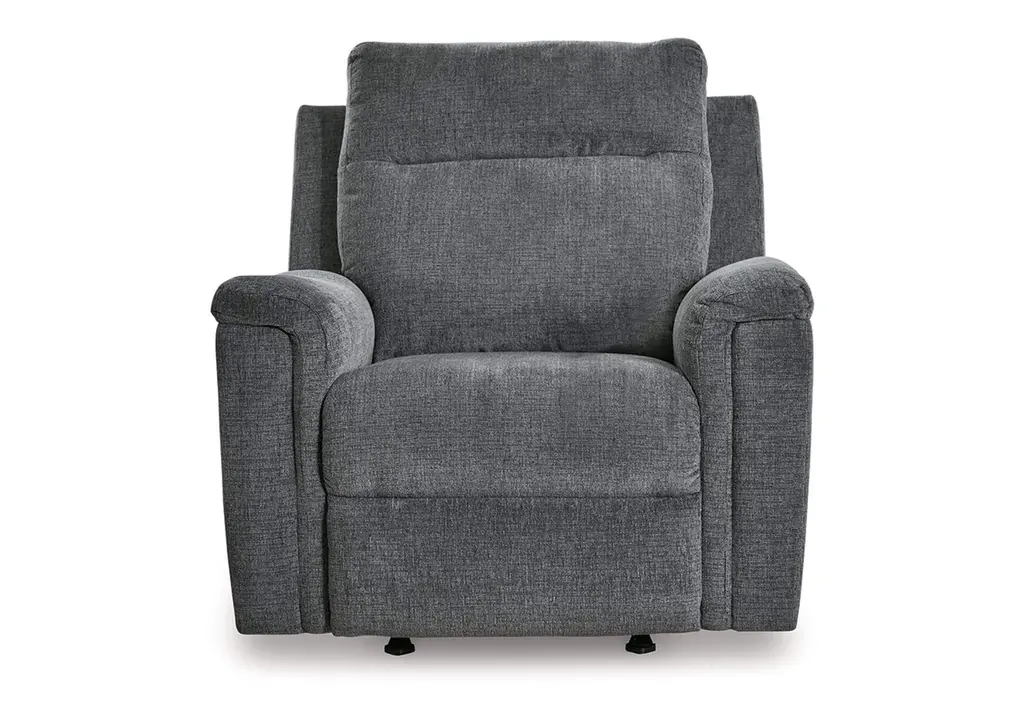 The ability to go from fully upright to relaxed and stretched out, all at the touch of a button, awaits. A beautiful blend of plush upholstery and traditional style, the Barnsana power rocker recliner invites you to sink into ultimate comfort. And with its tranquil rocking motion, you'll find it hard to leave your living room—that’s a given. Weight 104.000 lbs. (46.8kgs.)