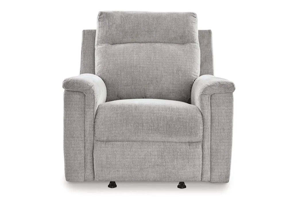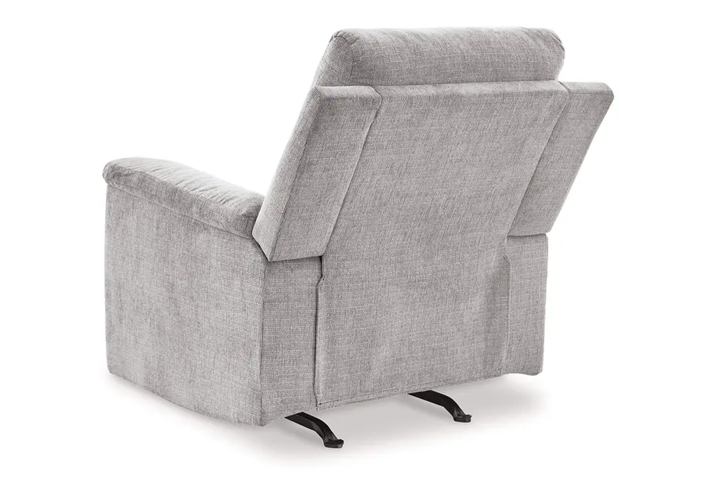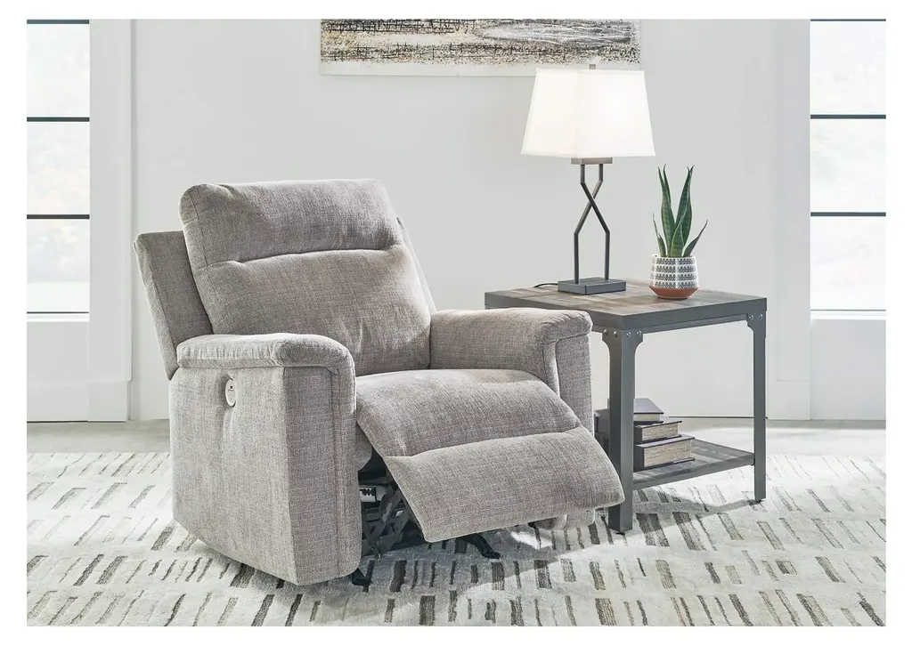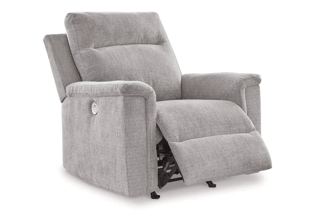 The ability to go from fully upright to relaxed and stretched out, all at the touch of a button, awaits. A beautiful blend of plush upholstery and traditional style, the Barnsana power rocker recliner invites you to sink into ultimate comfort. And with its tranquil rocking motion, you'll find it hard to leave your living room—that’s a given. Weight 104.000 lbs. (46.8kgs.)