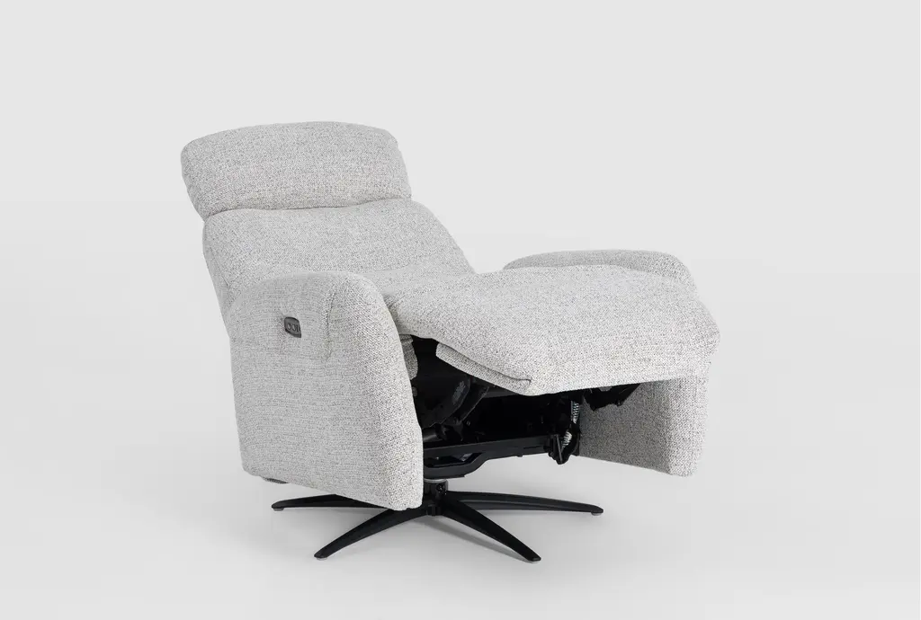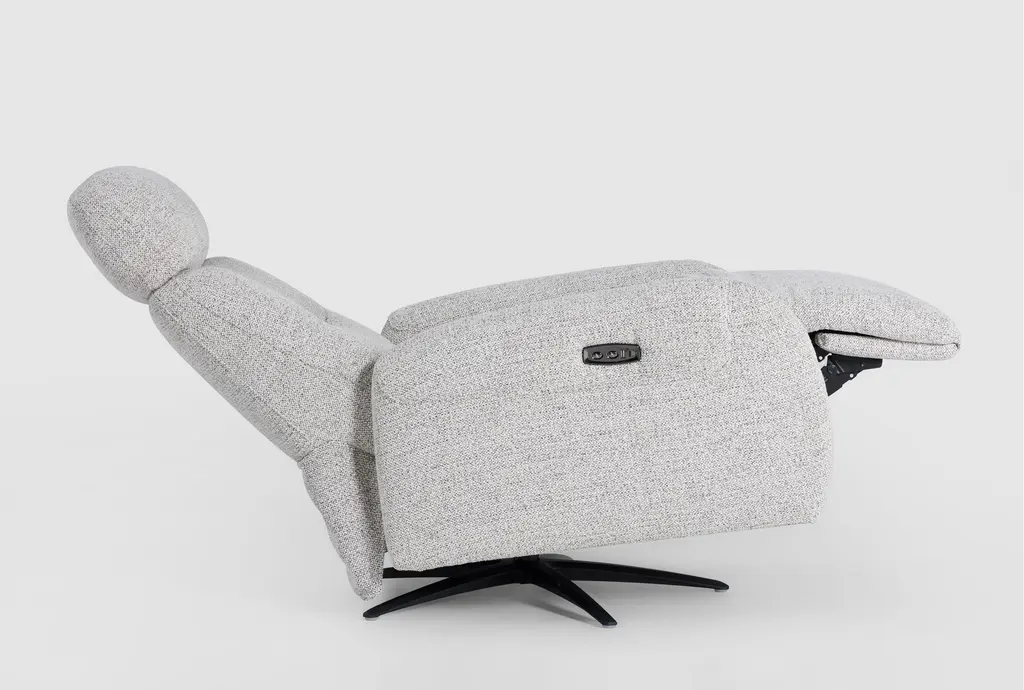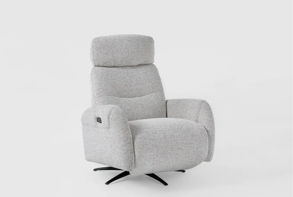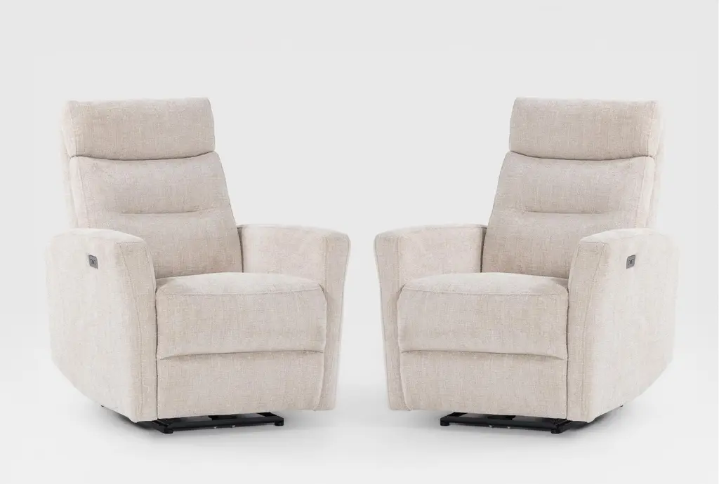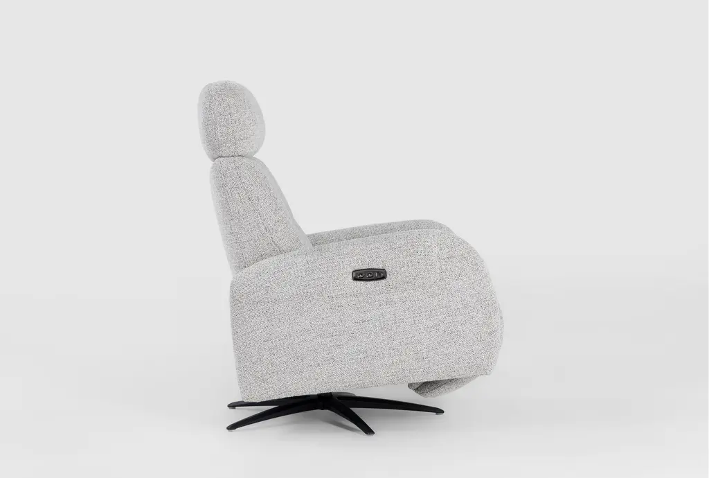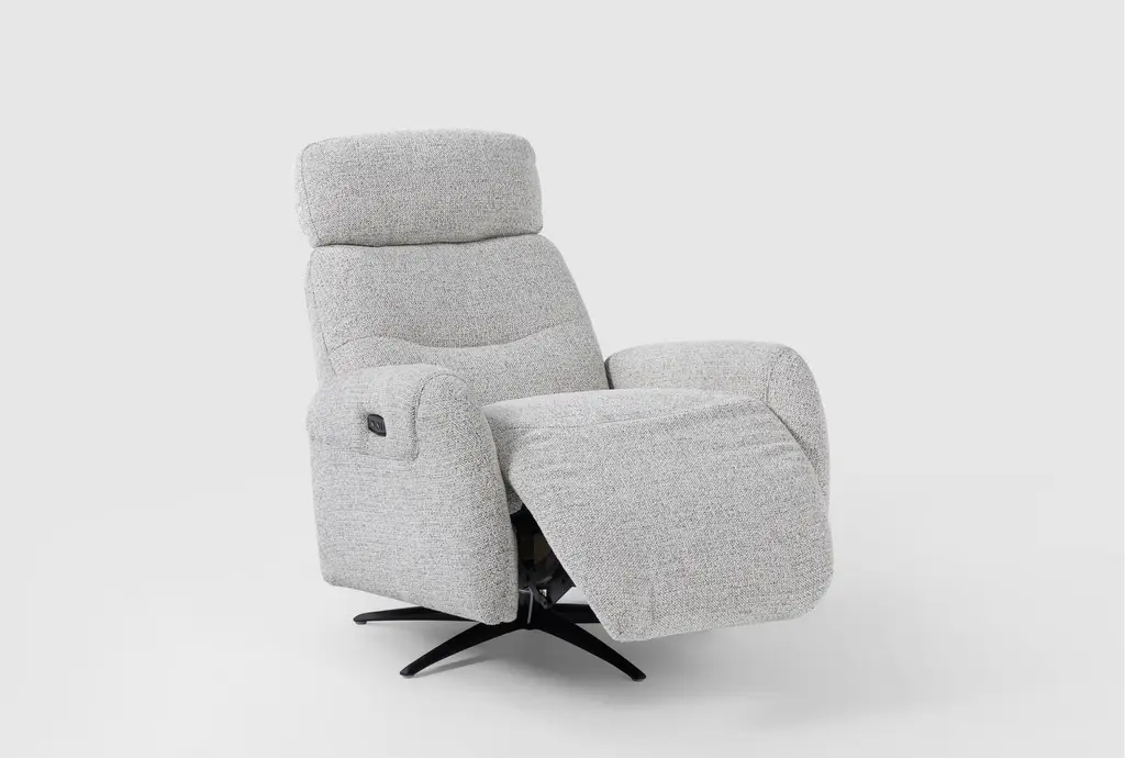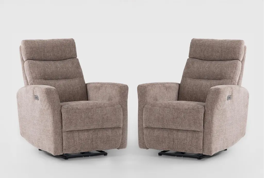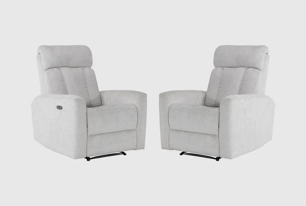 Caius Grey Fabric 32" Swivel Power Recliner With Manual Adjustable Headrest & Battery & Usb Set Of 2