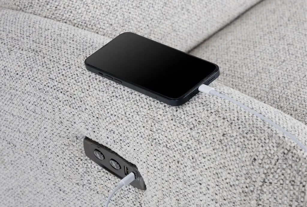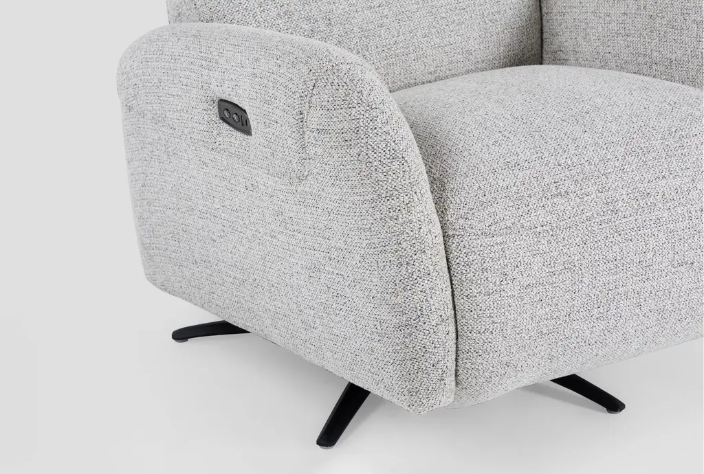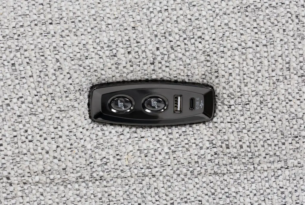Experience comfort and convenience with the Caius Grey Fabric 32" Swivel Power Recliner. This set of 2 features manual adjustable headrests and comes with built-in USB ports, ensuring you stay connected while relaxing in style. The plush grey fabric upholstery adds a soft touch to any living space.