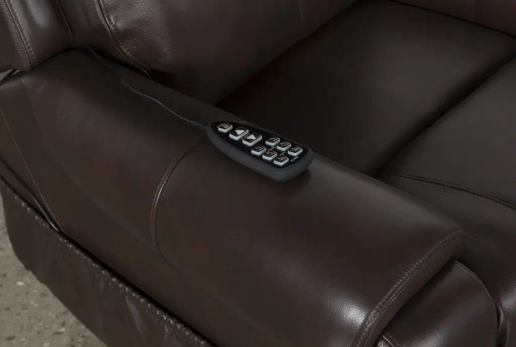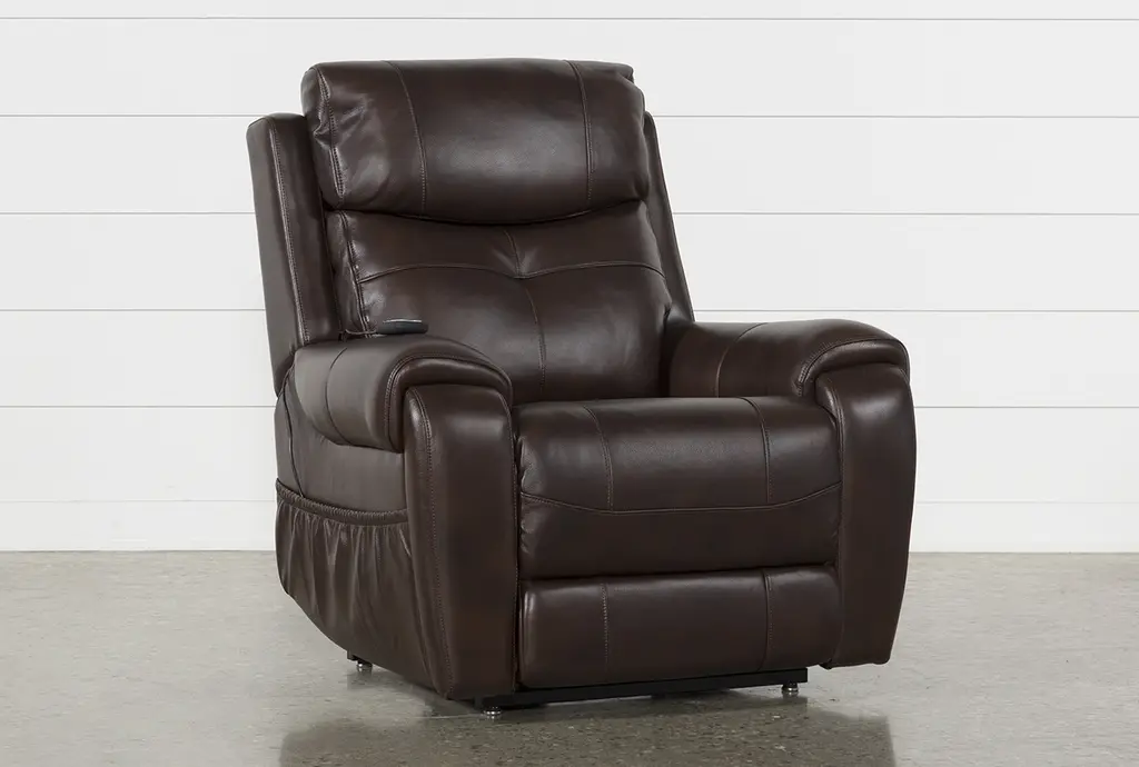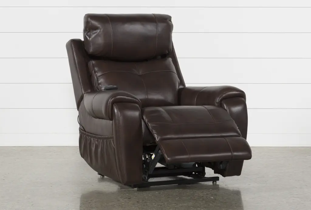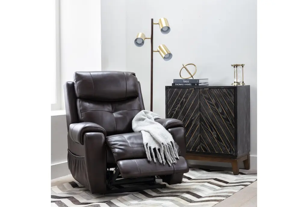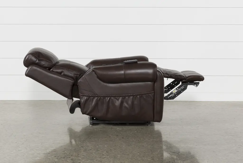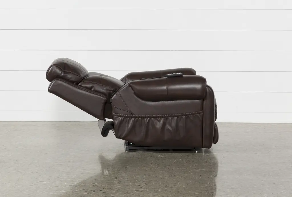 Carl Chocolate Brown Leather Oversized Power Lift Recliner With Power Headrest & Heat