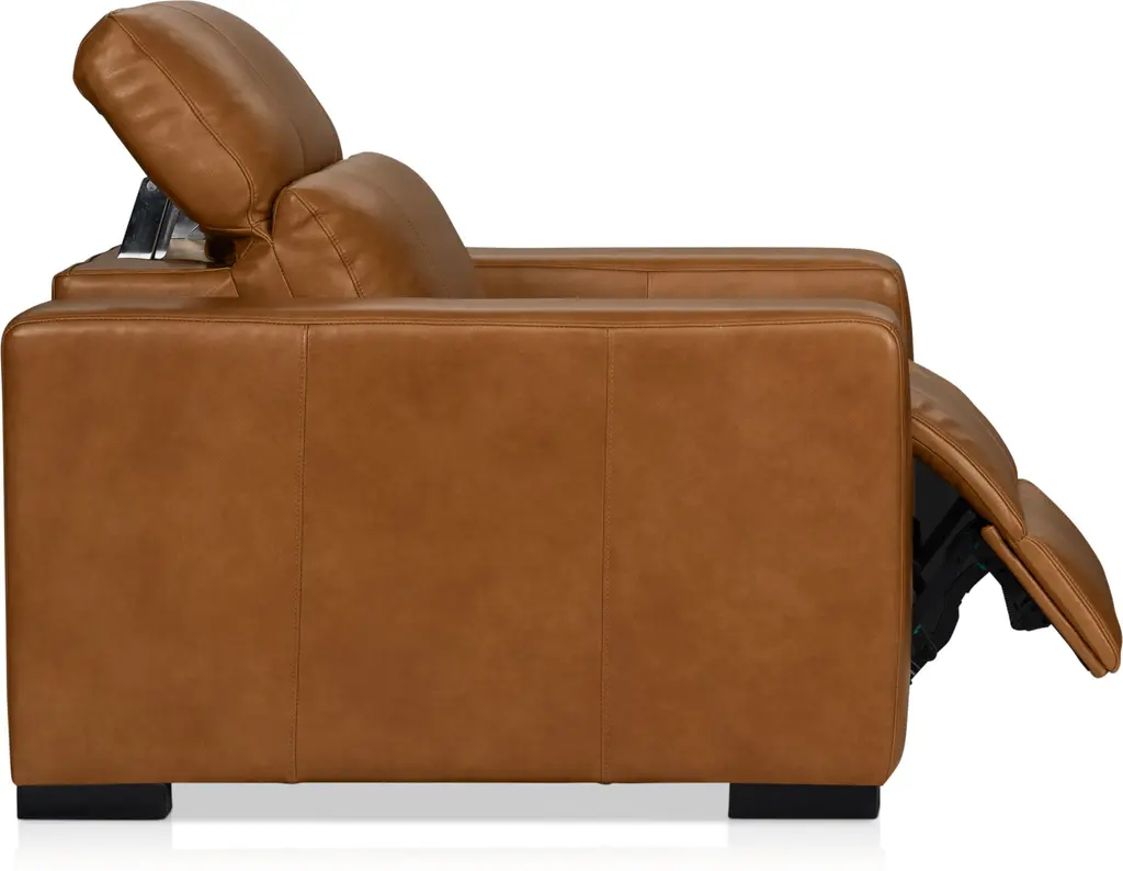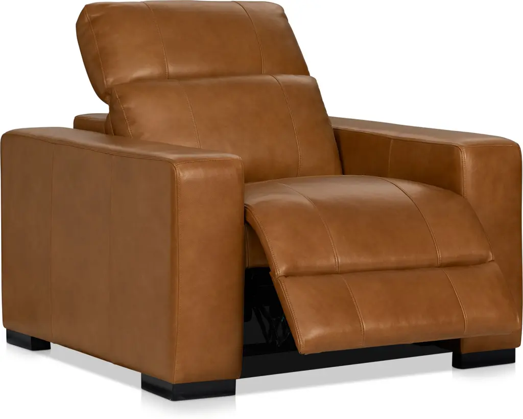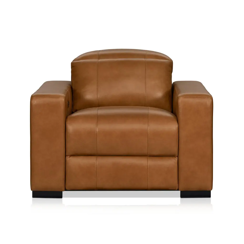 Our modern Chapman Collection’s a sophisticated take on reclining. In luxe top-grain leather with a sleek, streamlined silhouette and wide track arms. The low-profile design opens up your space and blends with any décor.