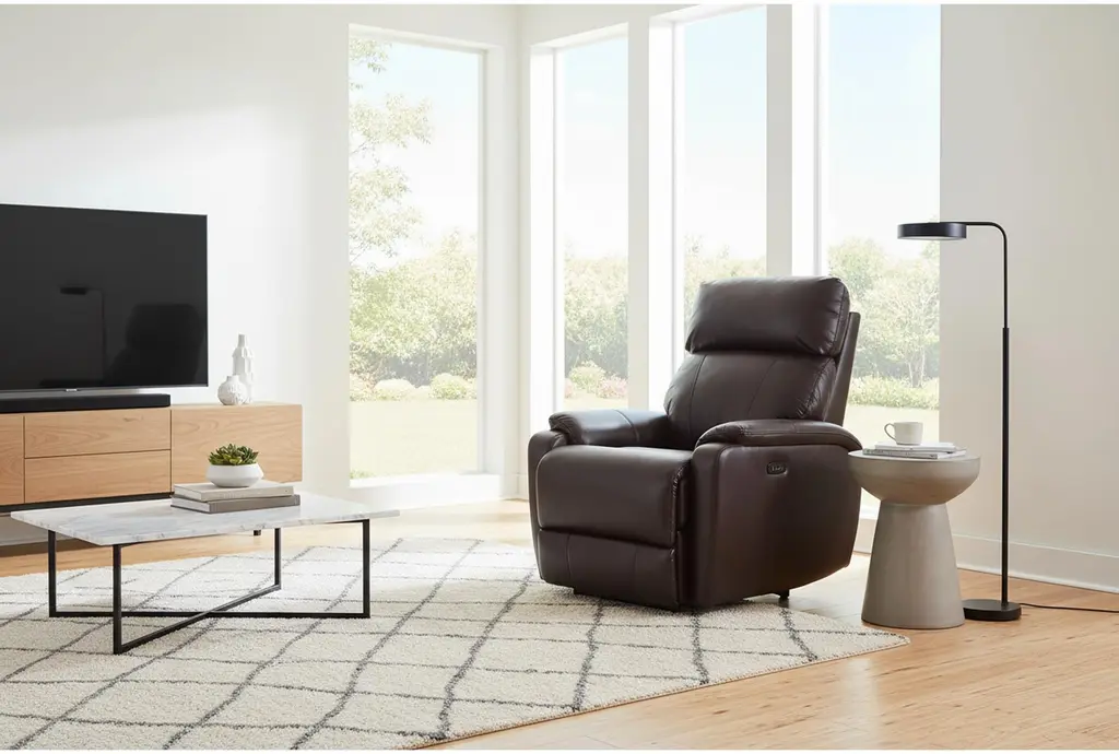 You should be able to enjoy a comfortable, durable power recliner for less, and you can with our incredibly-priced Connie power recliner. Available in 3 handsome colors, this design invites you to experience the benefits of smooth power reclining and power headrest adjusting – a combination created for epic relaxation. You can even plug in and charge up your device thanks to a handy USB port. This is what unwinding is all about.