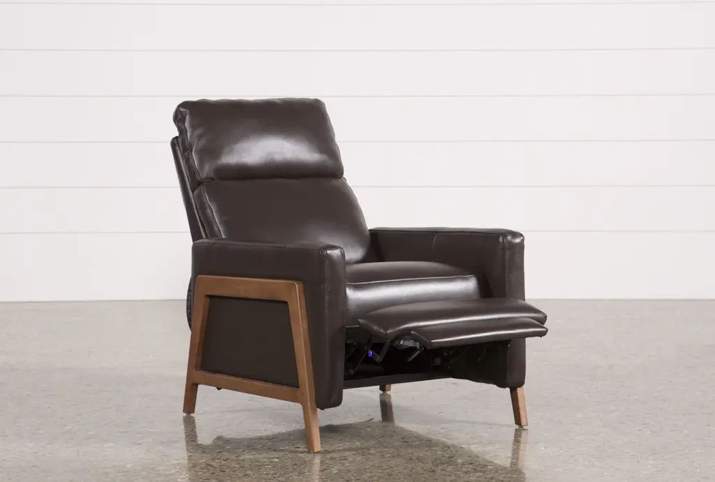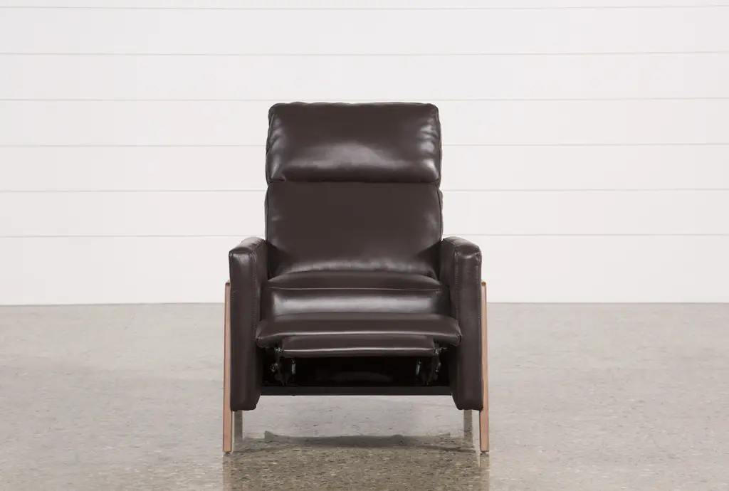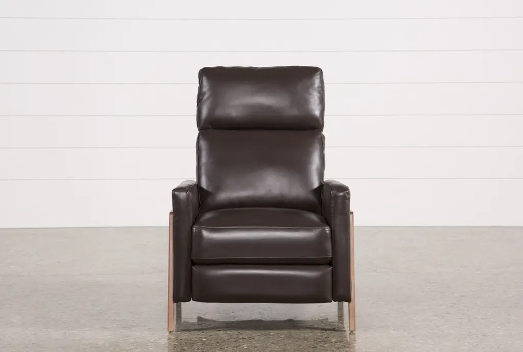 Our handsome Daniel leather push-back recliner will exceed your expectations for support and style. Stealthy and streamlined, a three-way push-back recliner mechanism with footrest allows you to experience deeper lounging and enjoy more distinctive design. Enriched by top grain leather seating and offered in multiple colors, this piece is an exceptional value and found only at Living Spaces.