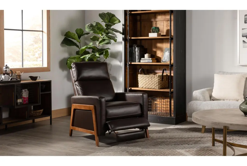 Daniel Chocolate Leather Manual Push Back High Leg Recliner