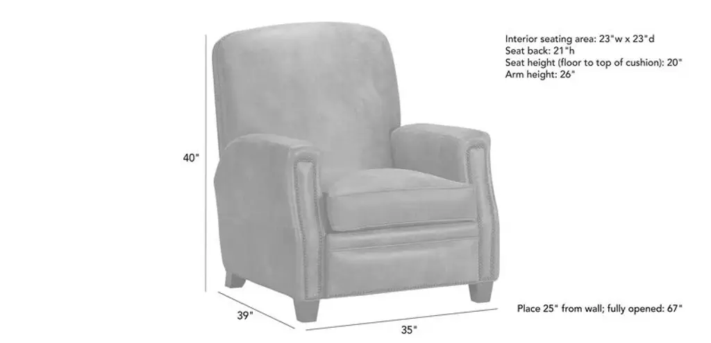 With its stylish art deco inspiration and deep, cushy seat, it’s no wonder our Dean club chair is a best seller. By adding the relaxing functionality of a recliner (with an optional power mechanism or power mechanism with rechargeable battery pack), we just kicked comfy up a notch. Dean’s sleek curves, streamlined contours, and well-padded back invite lounging in the most sophisticated way. In your choice of fabric or leather. Welting and top stitching give it a tailored touch.