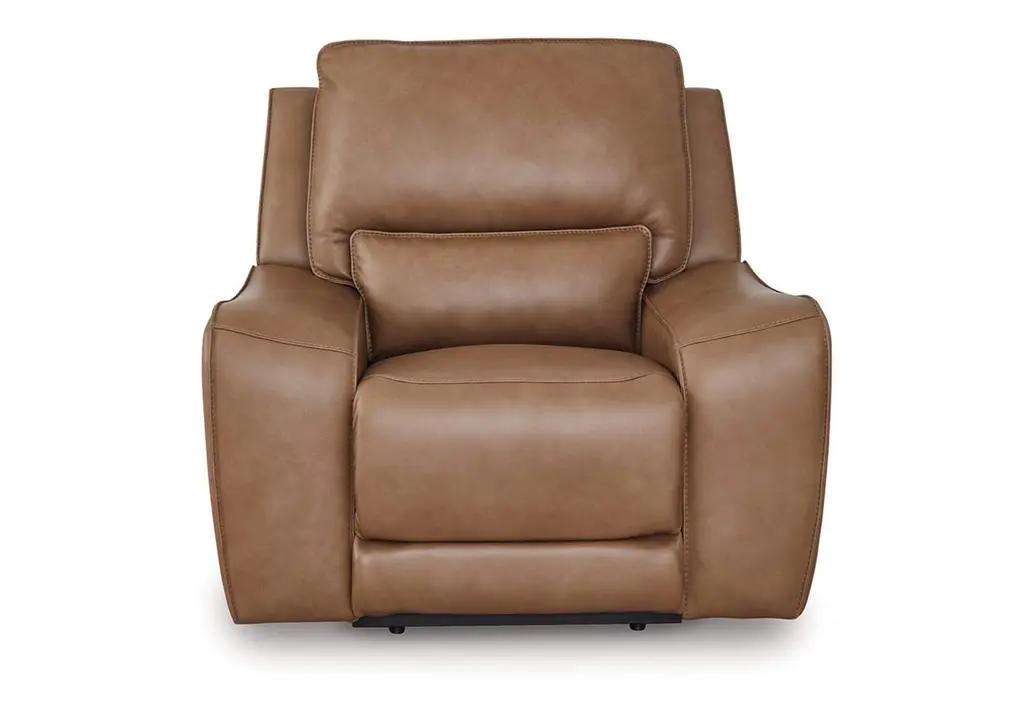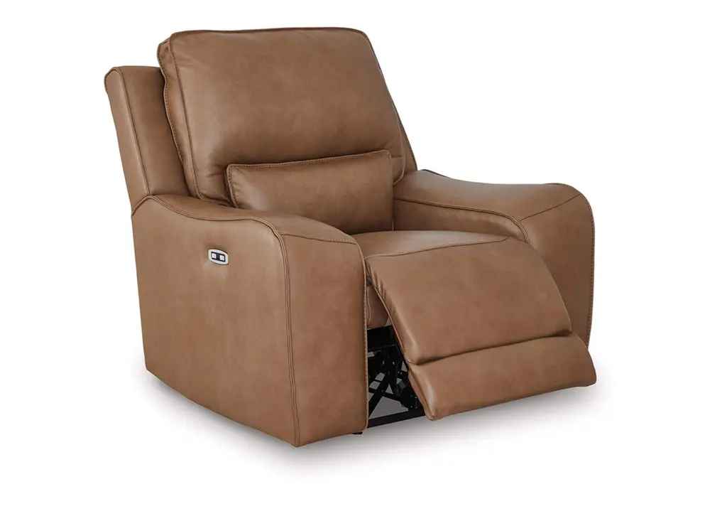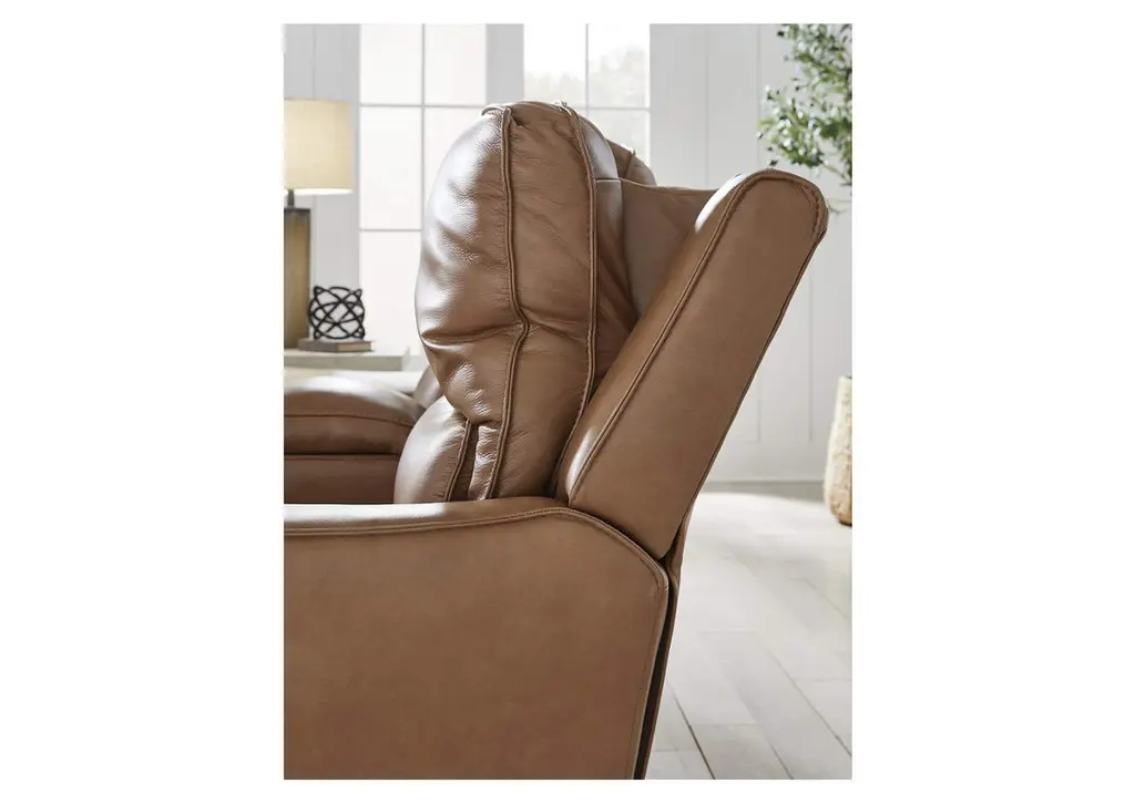 Live and lounge luxuriously. This power recliner brings an ultra-stylish flair to your home’s central hub. Its seating area is wrapped in top-grain leather in a rich caramel coloration, giving you a trend-right look made all the better with high-quality materials. And with the simple push of a button, you can recline or adjust the headrest to find your ideal comfort position. Weight 146.000 lbs. (65.7kgs.)
