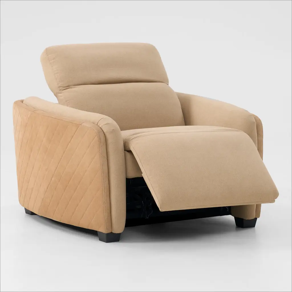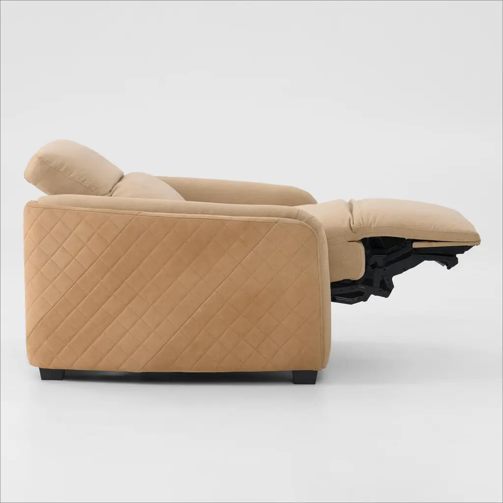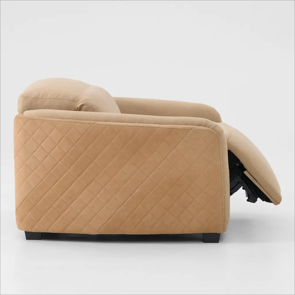 The Donovan Dual-Power Recliner is the perfect combination of style and savviness. With its stunning nubuck leather, unique diamond stitching, tech and reclining functions, your lounge life just got that much better.