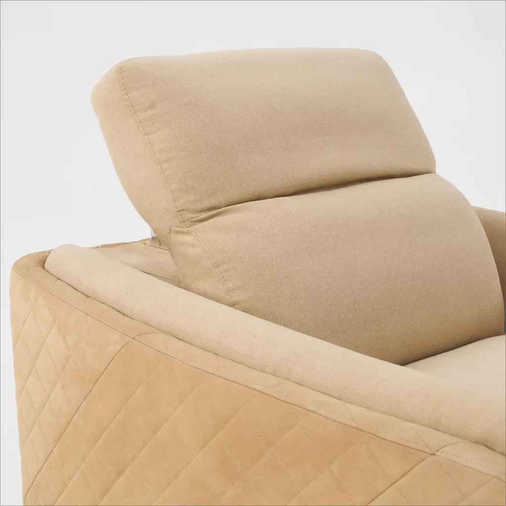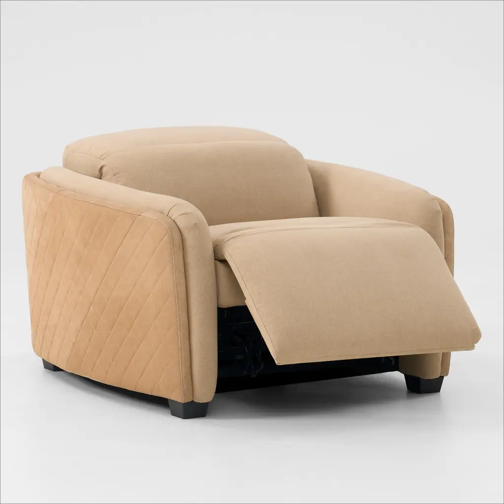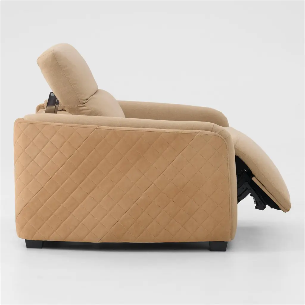 The Donovan Dual-Power Recliner is the perfect combination of style and savviness. With its stunning nubuck leather, unique diamond stitching, tech and reclining functions, your lounge life just got that much better.