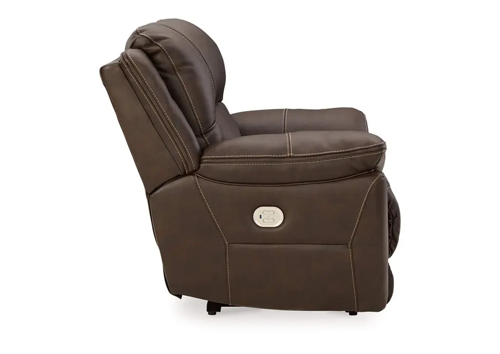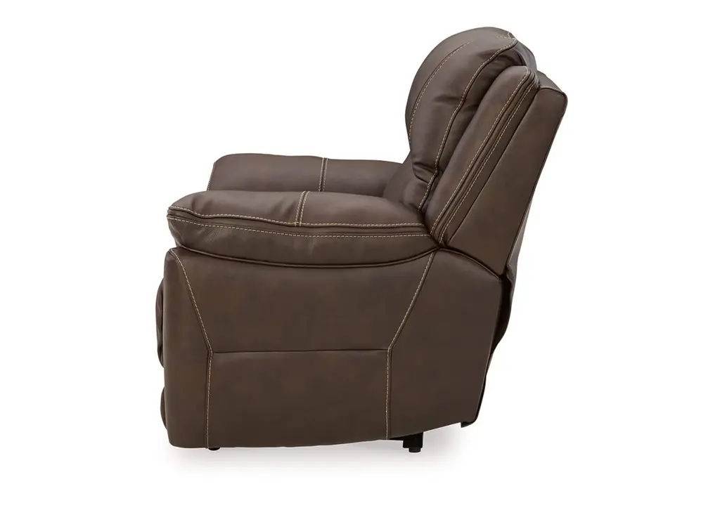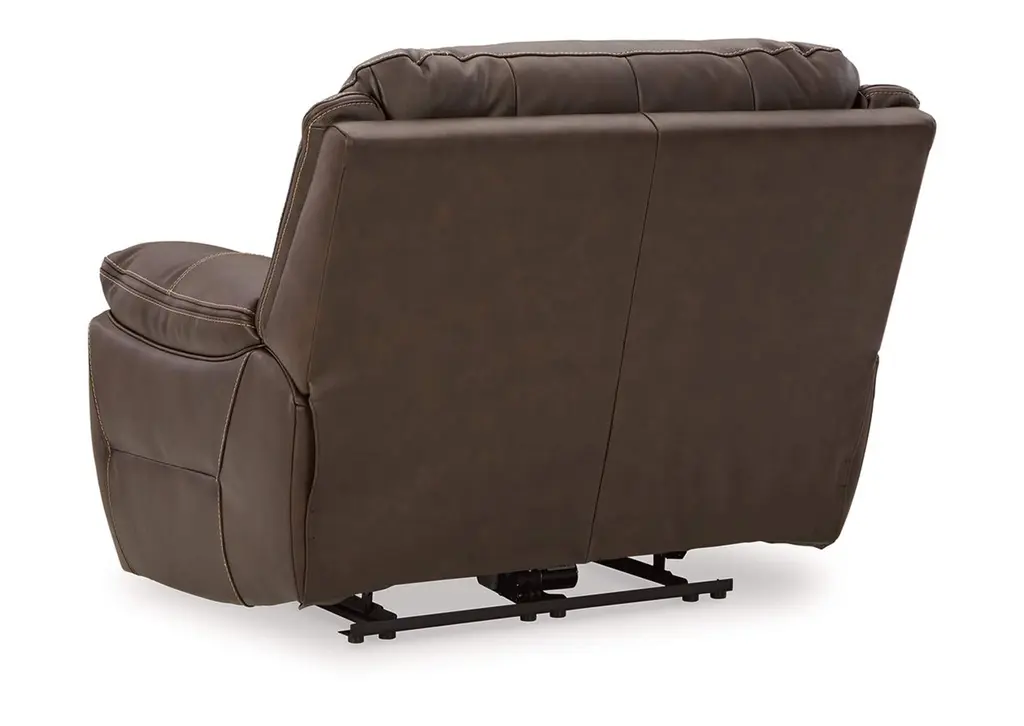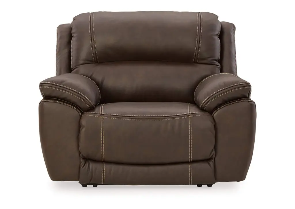 Load up on comfort in a cool, clean-lined and contemporary way with the Dunleith zero wall recliner with power headrest. Rest assured, the expertly matched leather and faux leather upholstery is enriched with a pebble grain effect for authentic appeal and enhanced with jumbo stitching for dramatic contrast. It features a one-touch power control with adjustable positions and includes an Easy View™ adjustable headrest that allows a primo view of the TV even when you're reclined. The extended ottoman provides extra length for leg comfort. A zero-draw USB plug-in at your fingertips lets you charge up as you chill out. Weight 163.000 lbs. (73.35kgs.)