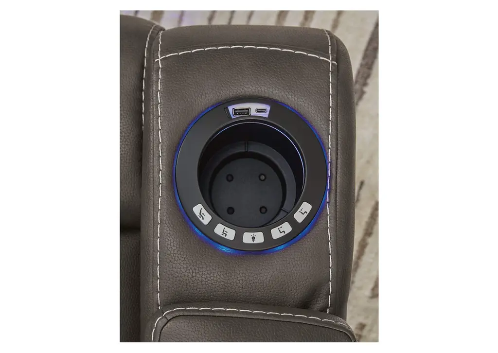 Prepare to be wowed. The Feazada power recliner is ready to elevate your home theater experience, with one-touch power controls and futuristic LED lights adorning the cup holders and base. Stay organized and never miss a moment of your favorite movie with the convenient flip-top armrest storage compartment, which is perfect for keeping drinks, snacks and remotes within reach. Once you sink into the comfortable seating, you won’t want to leave. This win-win design is a true stay-in masterpiece. Weight 131.000 lbs. (58.95kgs.)