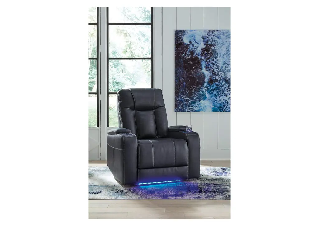 Prepare to be wowed. The Feazada power recliner is ready to elevate your home theater experience, with one-touch power controls and futuristic LED lights adorning the cup holders and base. Stay organized and never miss a moment of your favorite movie with the convenient flip-top armrest storage compartment, which is perfect for keeping drinks, snacks and remotes within reach. Once you sink into the comfortable seating, you won’t want to leave. This win-win design is a true stay-in masterpiece. Weight 131.000 lbs. (58.95kgs.)