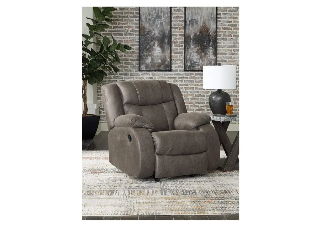 The First Base recliner tees you up to catch up on streaming or enjoy the latest game without breaking the bank. Its easy reclining motion and inviting stitched details craft a stylish seat that keeps you utterly at ease. And with a versatile neutral faux leather, this recliner knocks contemporary comfort out of the park. Weight 89.000 lbs. (40.05kgs.)