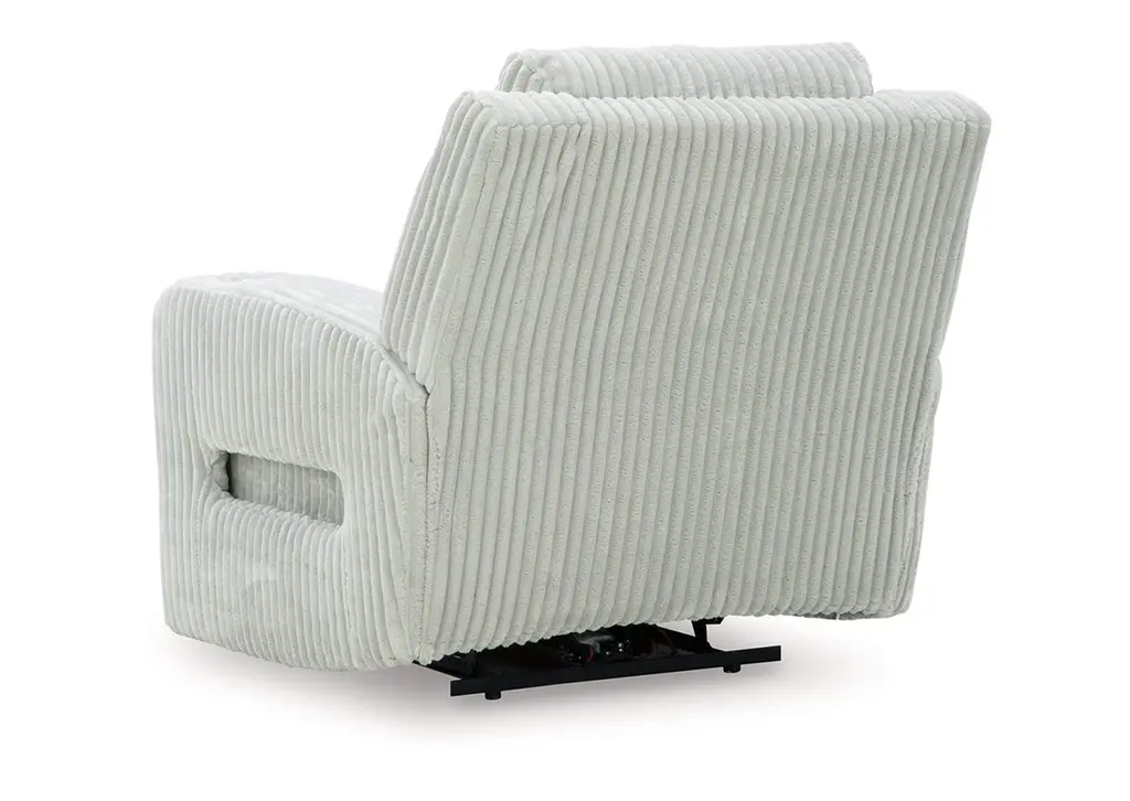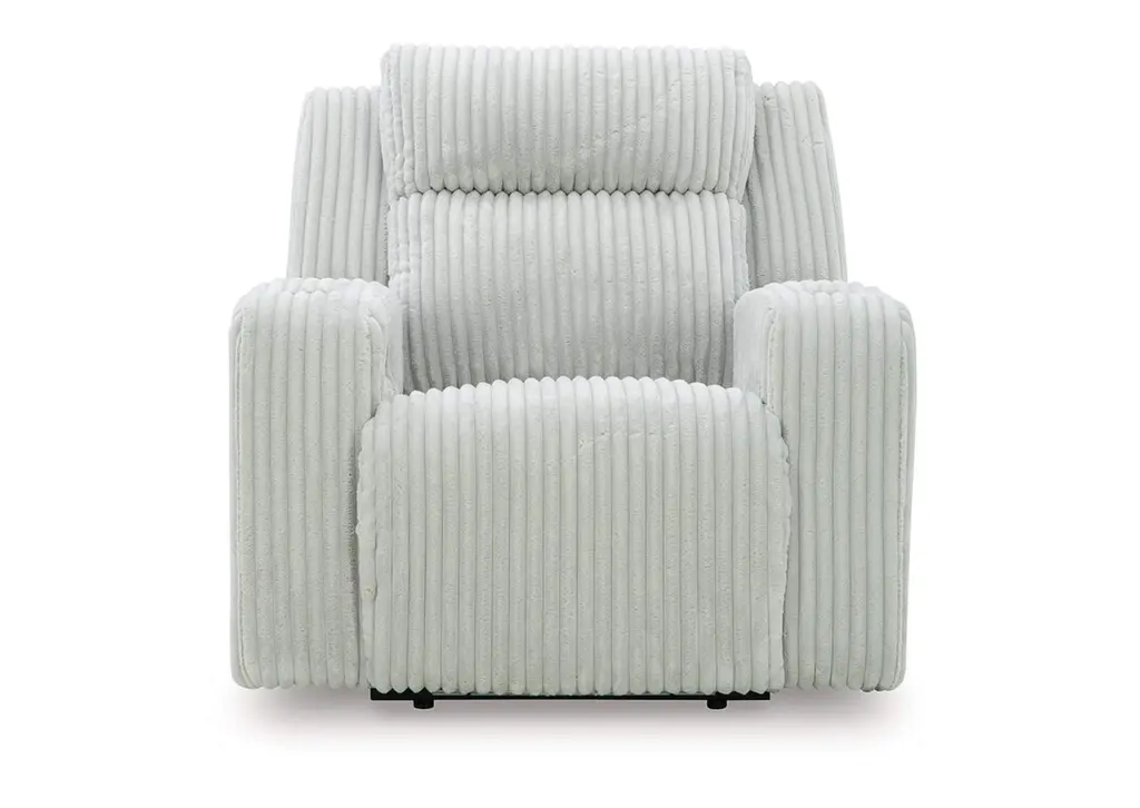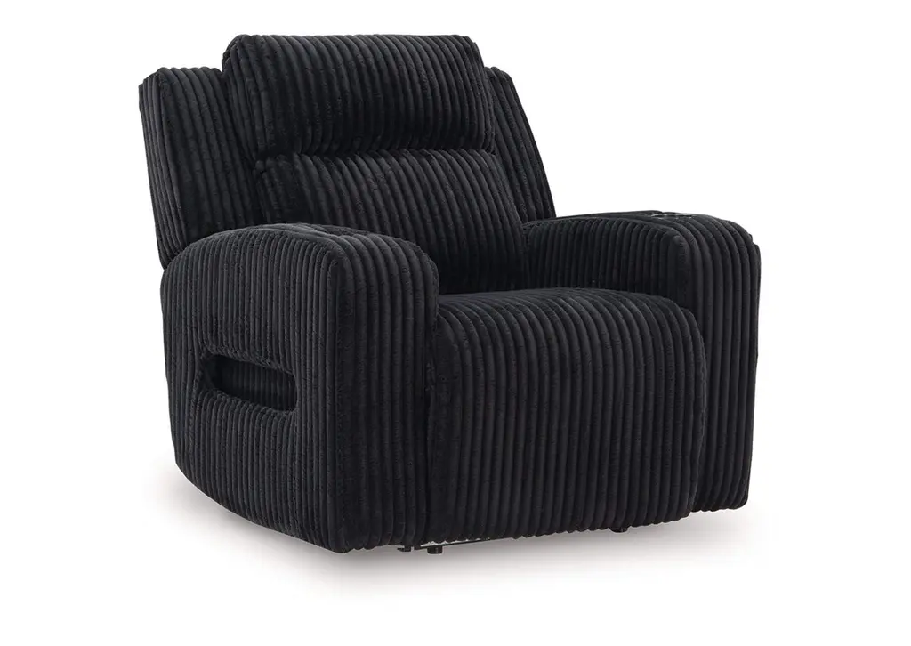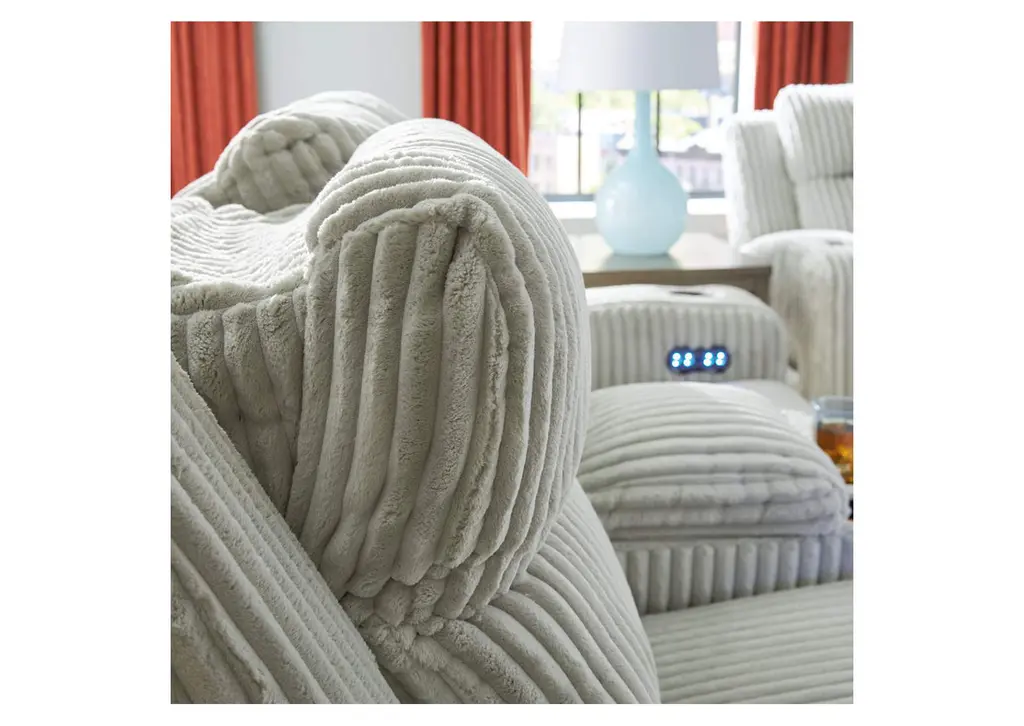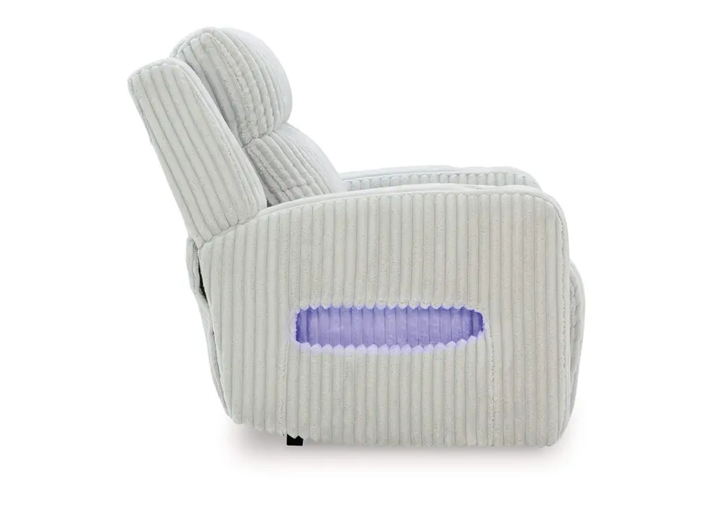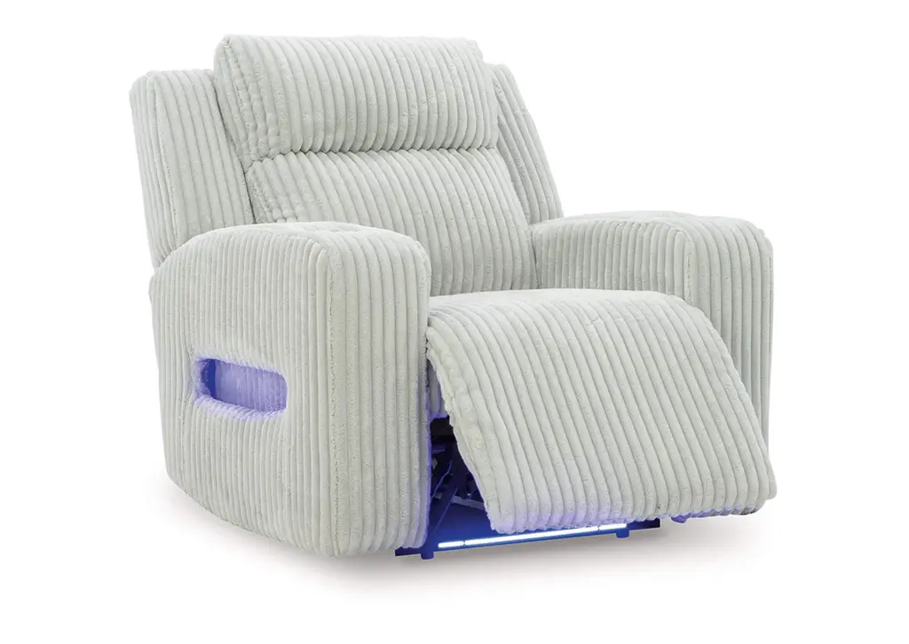 Trend-right style, meet irresistible modern function. Your living room gets a cozy-cool upgrade with this power recliner. Curl up in its ultra-chic corded upholstery and recline with one-touch controls. Is it movie night or game time? With ambient LED lighting, this recliner transforms from a serene relaxation spot to an entertainment hub. USB charging, cup holders and storage cutouts make lounging all the more convenient. Weight 138.000 lbs. (62.1kgs.)