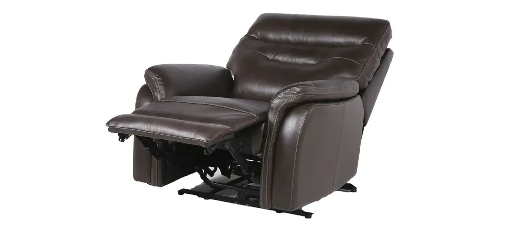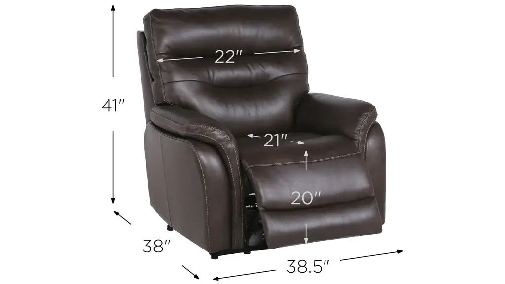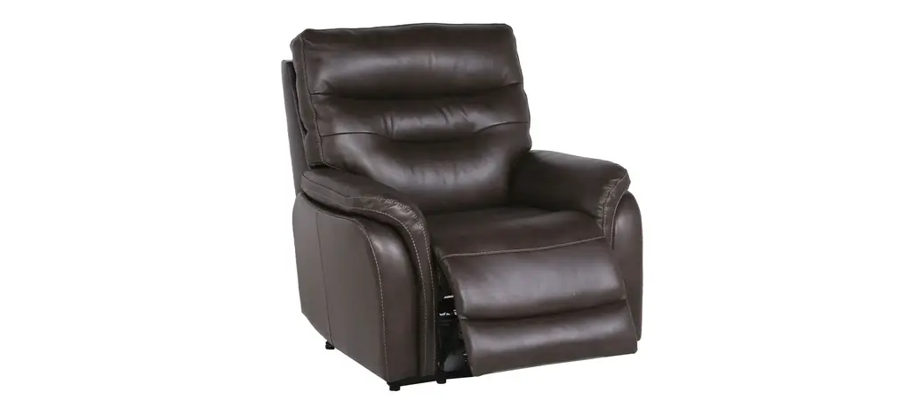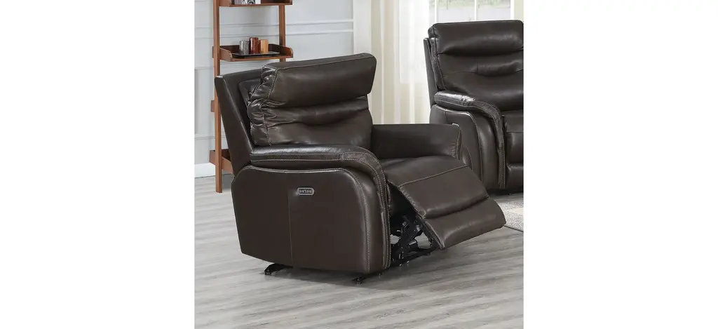 The Fortuna Power Recliner Chair is leather power reclining at it's best. This chairs contemporary styling and top-grain leather seating surfaces with high resiliency foam cushions provide unsurpassed comfort. Control everything from your seat with a control panel that powers the reclining footrest and headrest with a USB port for recharging. For convenience, the home button returns all items to their original position.