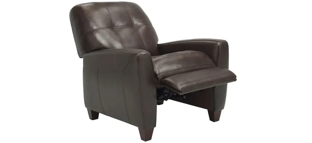 Beautiful leather and sleek design come together in the Gino pushback recliner. Its simple, contemporary look is gently accented with tapered feet and gently flared track arms.