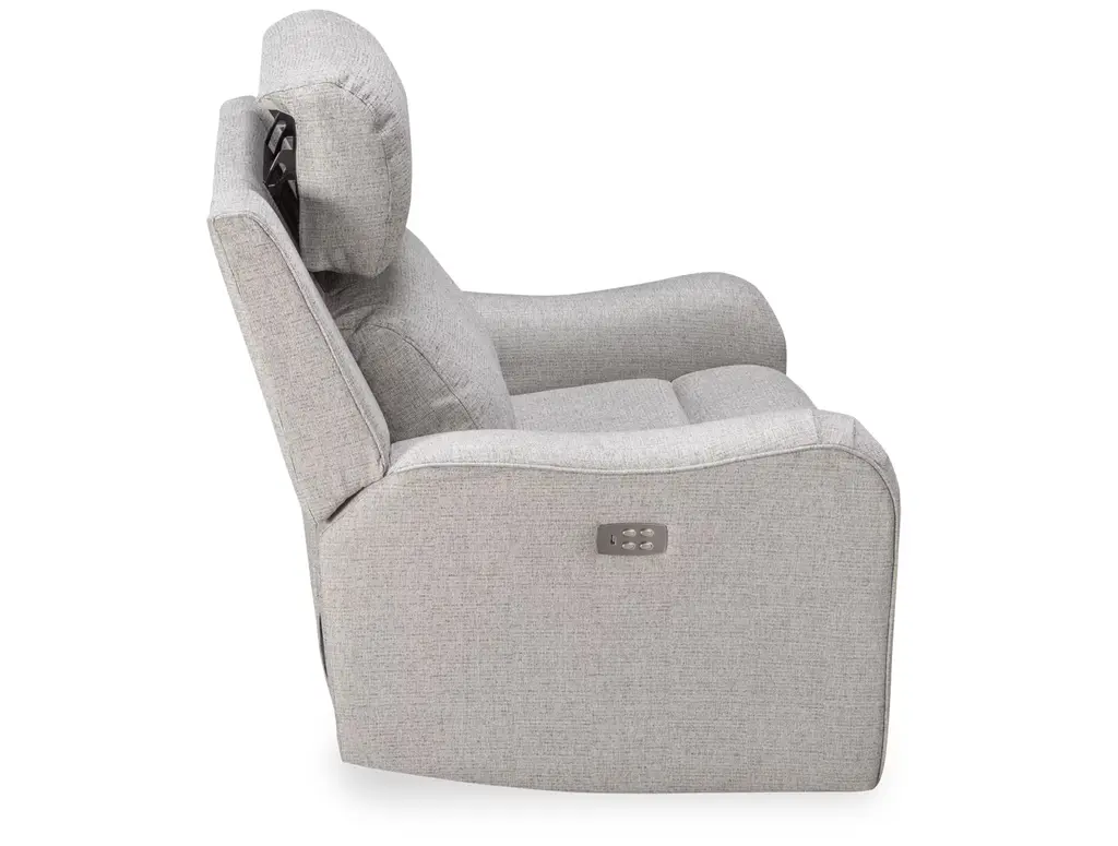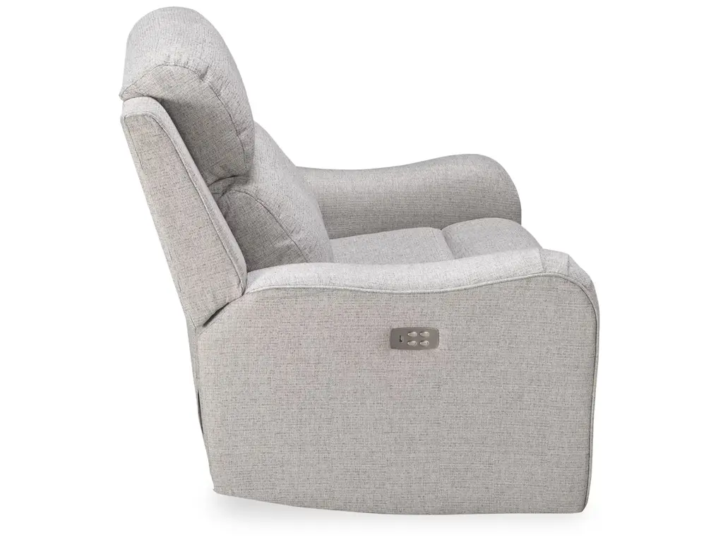 Kick back and relax on the Synergy Granite Power Recliner with Headrest. It features track arms, a pillow top headrest, tufted back, and a chaise footrest. The power buttons let you enjoy all the reclining positions at your fingertips, plus there is a USB charging port. This contemporary-style power recliner also lets you adjust the headrest.