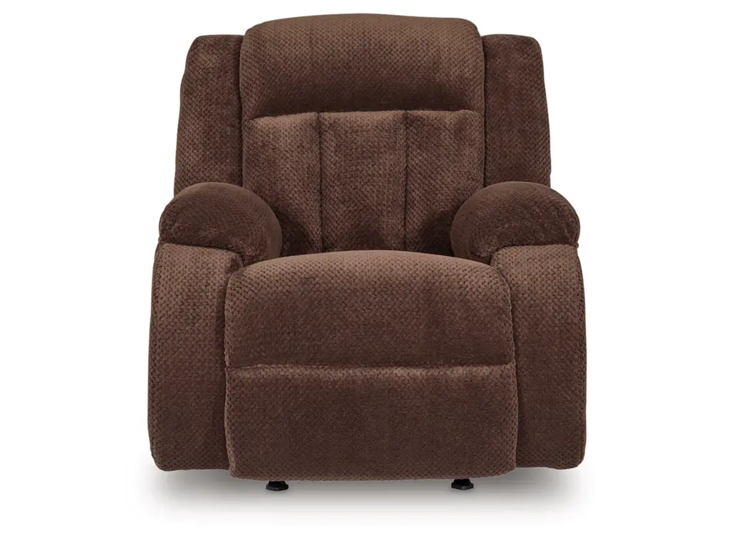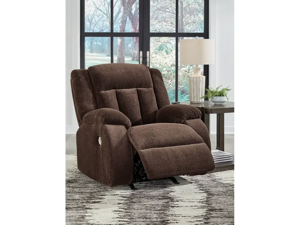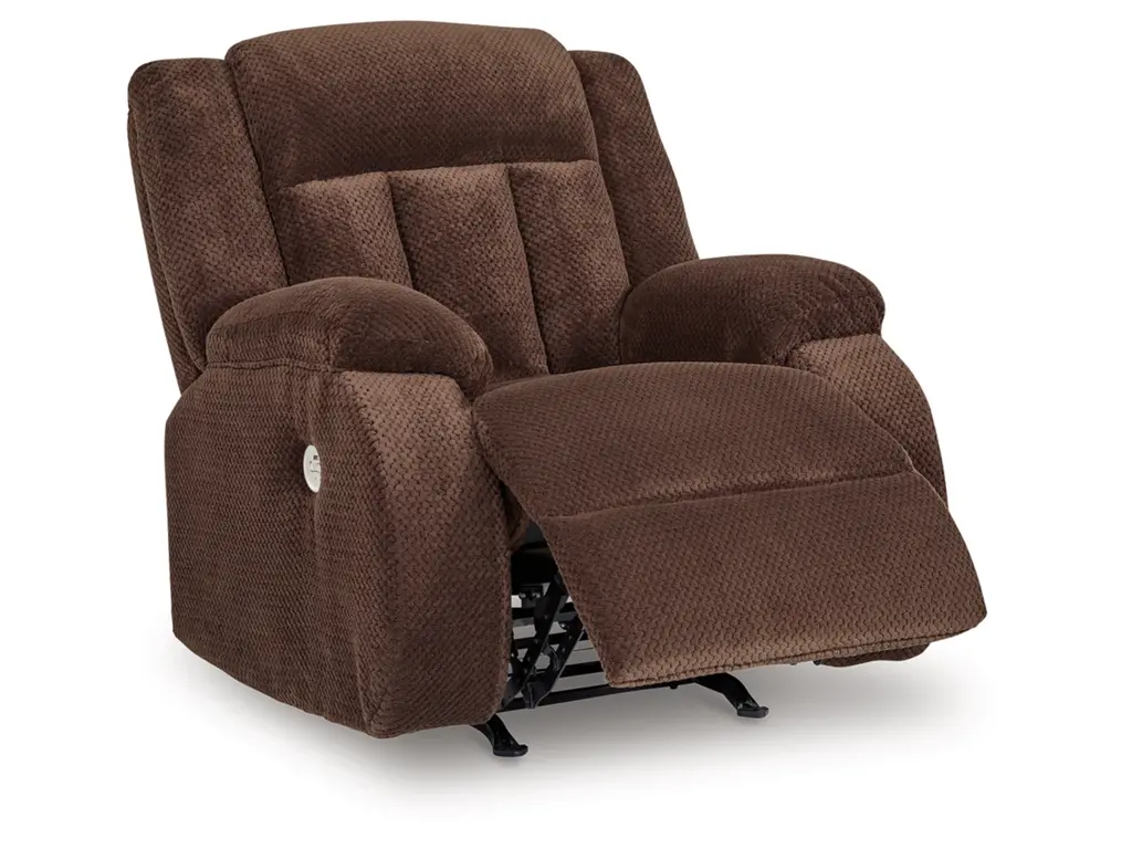 There's no need to sacrifice looks for comfort—the Greely Bend power rocker recliner serves up both, plus a richly relaxed sense of style. Its chocolate-hued velvet upholstery is ultra soft, with a plush waffle weave for an added layer of interest. The overstuffed pillow top armrests are custom made for lazy afternoon catnaps. And a one-touch power control takes the pleasure of reclining to a higher level.