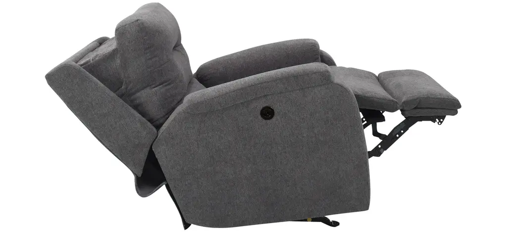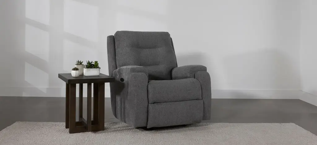 Elevate your comfort level with the Halenbeck Power Recliner. Using a power control conveniently placed in the arm, you can easily transition from sitting to reclining for maximum relation. A USB charging port built in the control allows you to keep devices powered up and ready to for use. Our patented DualFlex Spring System offers firmness and flexibility as you sit, so you can rest assured that your recliner will stay supportive for years to come. Additional comfort-enhancing features include triple-divide back cushions that have a refined look and keep your head, neck and lower back feeling well-supported. A contoured seat with chaise pad takes pressure off your legs as you sit, while rounded pad-over track arms keep your forearms comfy.