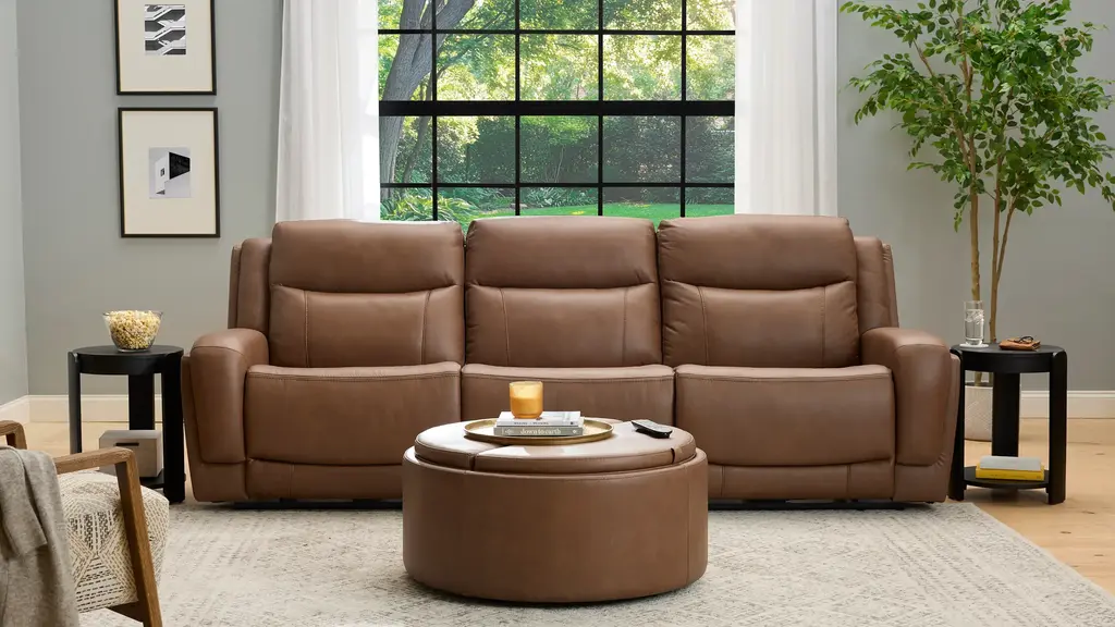 Harbin Leather Left Arm Facing Triple Power Recliner
