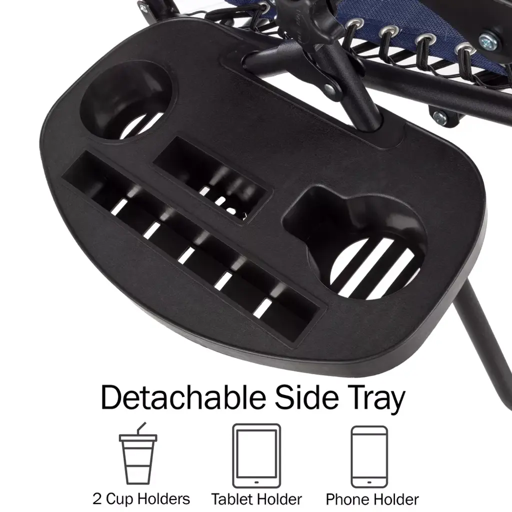 Get ready for your next outdoor adventure with this Patio Chairs Set of 2 by Hastings Home. Use the adjustable padded pillow on each patio chair as a neck rest or for lumbar support, and keep everyday essentials like beverages, sunscreen, and small electronics close by in the 2 cup holders or phone/tablet holders on the detachable side table. Suitable for use as camping accessories, beach chairs, RV accessories, and balcony furniture, these outdoor folding chairs boast sturdy tubular steel frames and rugged fabric to easily resist the elements and support up to 300lbs each