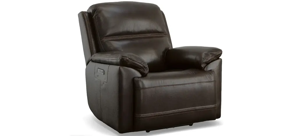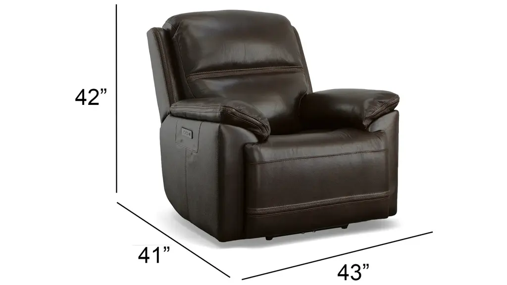 Inviting comfort and long-lasting support will make you want to stay nestled all day and night in our Jackson Power Recliner. This recliner offers fine-tunable relaxation with a dual power recline mechanism, adjustable headrest and Zero Gravity technology that reduces tension and pressure on your body. An attractive cross-stitch pattern on the back, armrest edges and footrest add distinctive style, while a waterfall chaise footrest and pillowy arms provide comfortable support. Built-in USB ports keep mobile devices conveniently charged and ready for streaming. Available in two color choices of luxurious top grain leather, the Jackson power recliner with console will remain looking beautiful in your home for years to come.