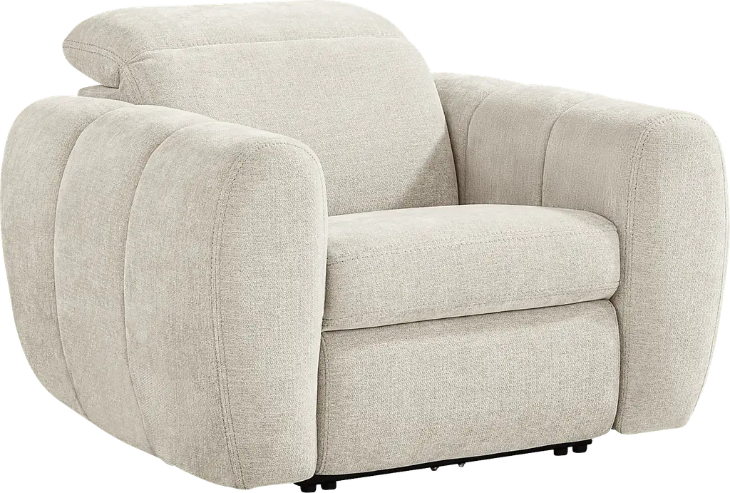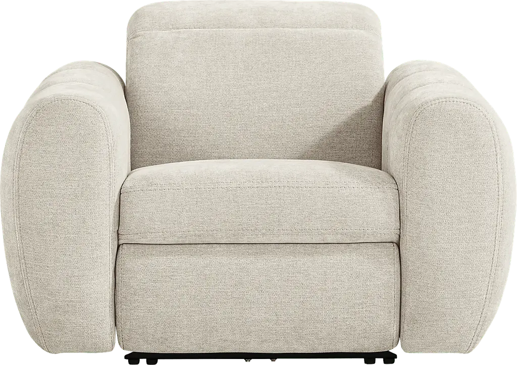 Generous in scale and rich in comfort, the Laurel Heights recliner transforms everyday lounging into an experience of relaxation and connection. Upholstered in gray woven fabric, this seat reclines at the touch of a button and allows you to easily kick back with a power adjustable headrest and chaise-style footrest. Top stitched seams add texture and a touch of detail throughout, while tailored mailbox arms lend a plush feel. Upholstery: 100% Polyester.