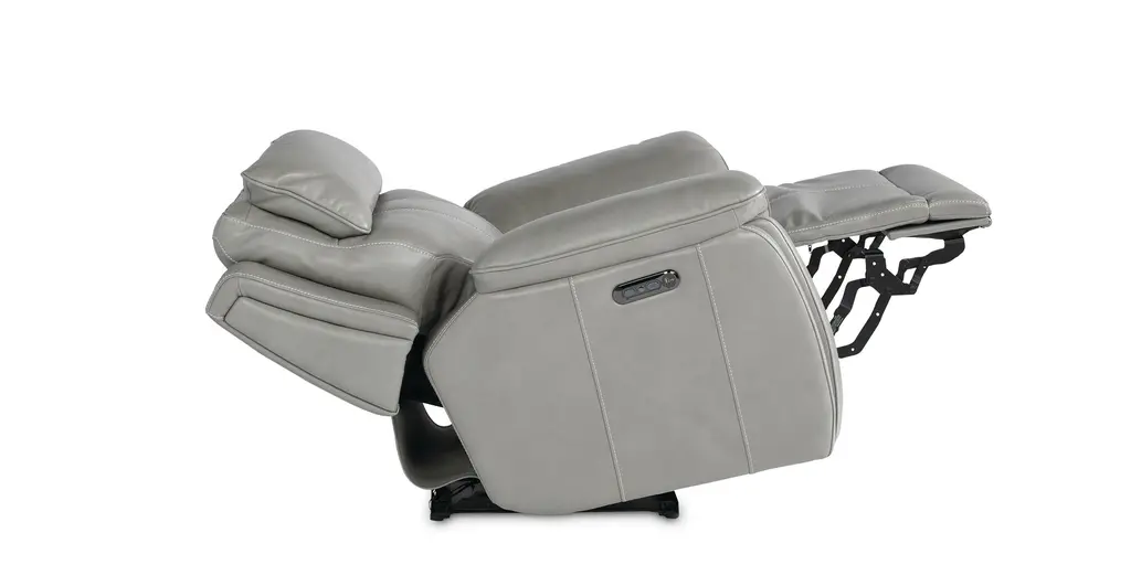 Settle into the Levitate Power Recliner and experience the luxury of zero-gravity comfort. With the press of a button, Levitate lifts your legs above your heart, improving circulation while reducing pressure points to create a floating sensation that promotes deep relaxation. The power-adjustable headrest lets you find just the right angle for reading, watching television, or resting, while deeply cushioned seating and refined contrast stitching elevate both its comfort and style. Handtailored in a heavyweight, protected leather with vinyl match on the outer arms and back, the Levitate recliner brings a bold, upscale look and feel to everyday lounging.