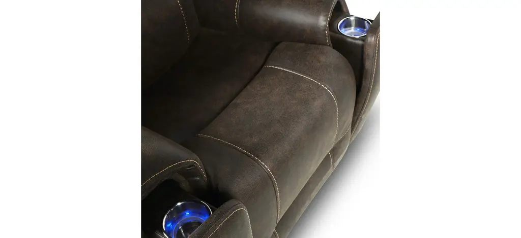 The Lexington Power Media Recliner has all the bells and whistles that will make it your favorite chair in no time. This triple-power recliner features a power headrest, power footrest, and power lumbar along with hidden, lighted cup holders. This reclining all-star exhibits a transitional design with a faux-leather cover that is pillow-soft to the touch and easy to clean.